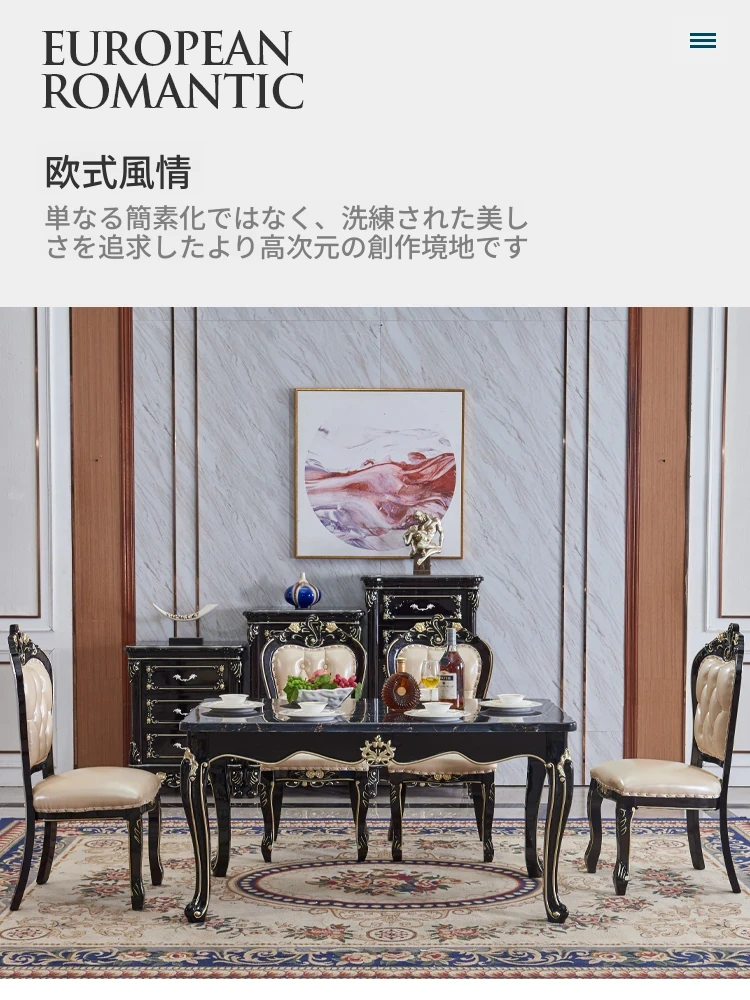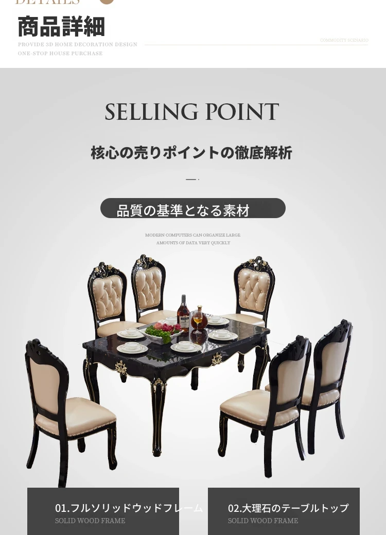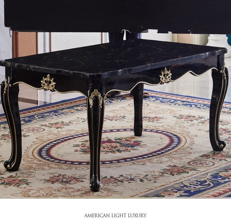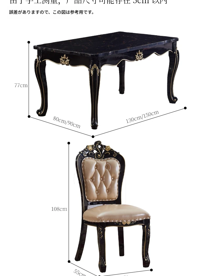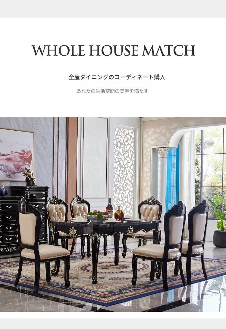 欧風マーブルダイニングテーブルセット|全無垢材使用の長方形テーブル|現代のシンプルなデザイン|大小の住宅に最適な家庭用食卓