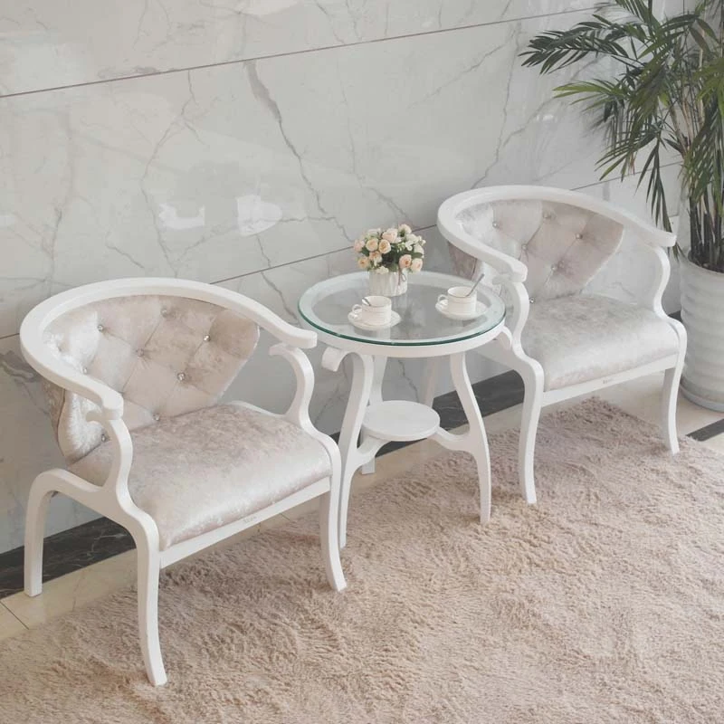 販売所・ホテルロビー向けのソファ&チェアセット!おしゃれな休憩スペースに最適な1テーブル4チェアの美容院&ティーショップ用単独椅子コンビネーション。快適なひとときを提供します!