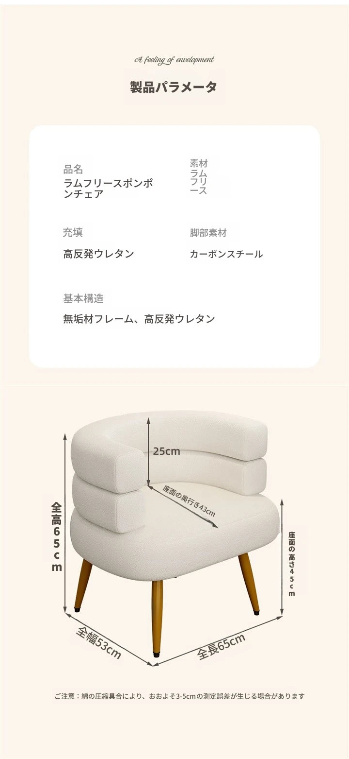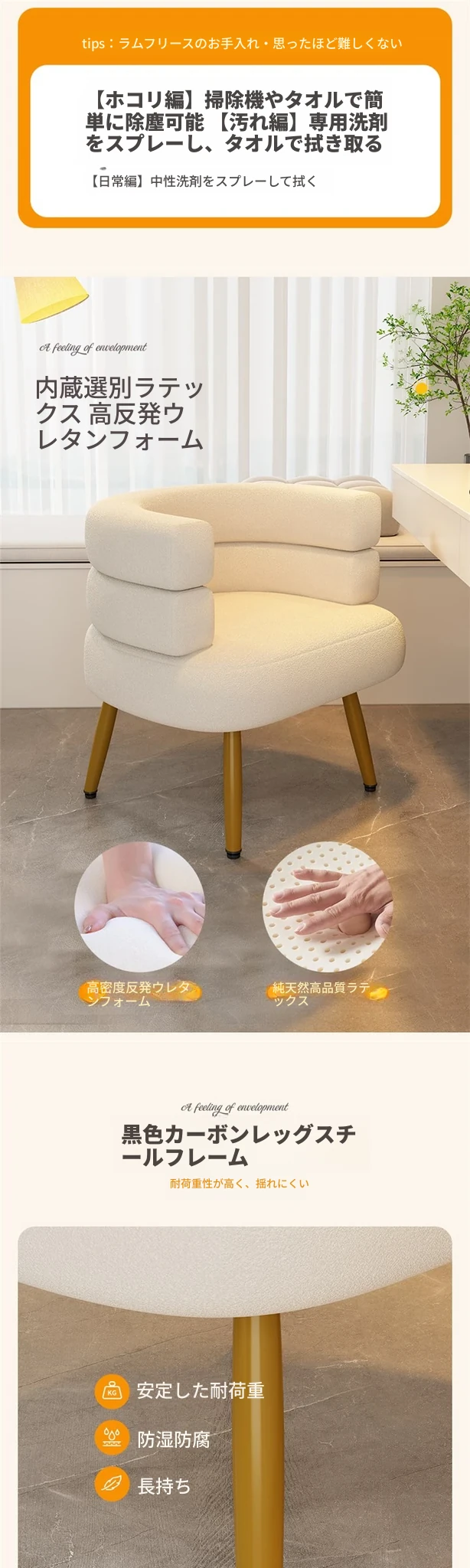 クリームホワイト-ゴールドフレーム【ラムフリーススポンジクッション】