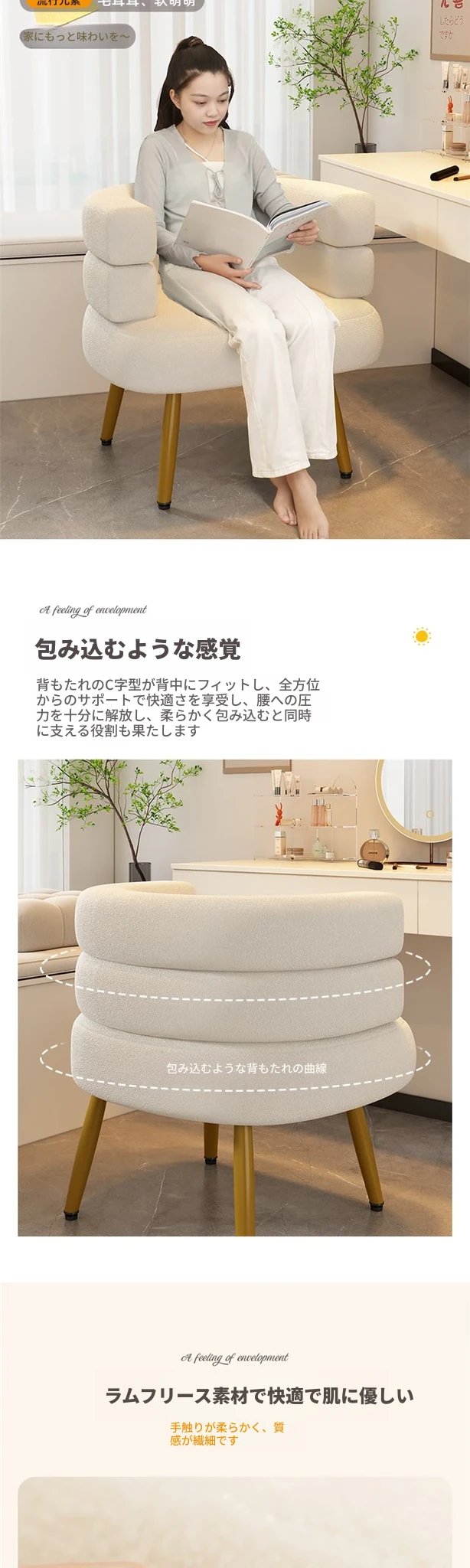 女子向け高級感溢れる化粧椅子2023年版|おしゃれな寝室のための化粧台用スツール|軽やかなデザインと快適な背もたれで、毎日のビューティータイムを特別なものに!