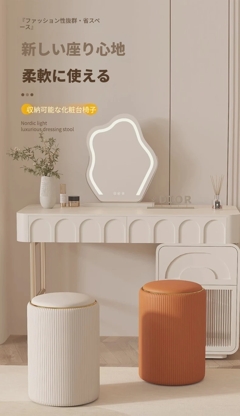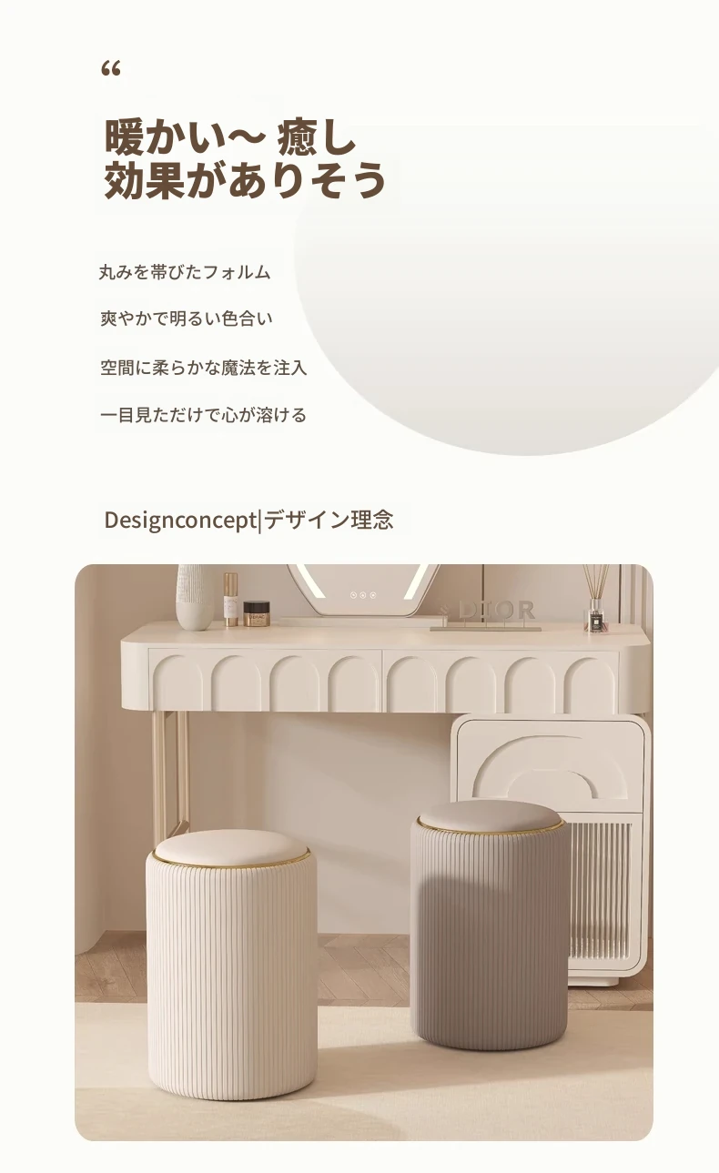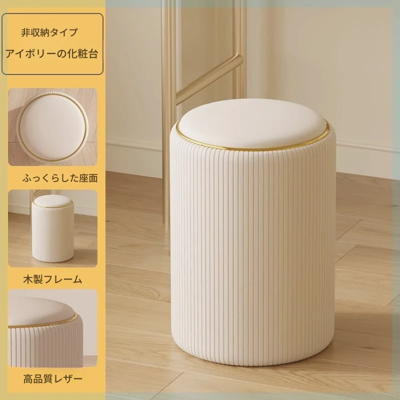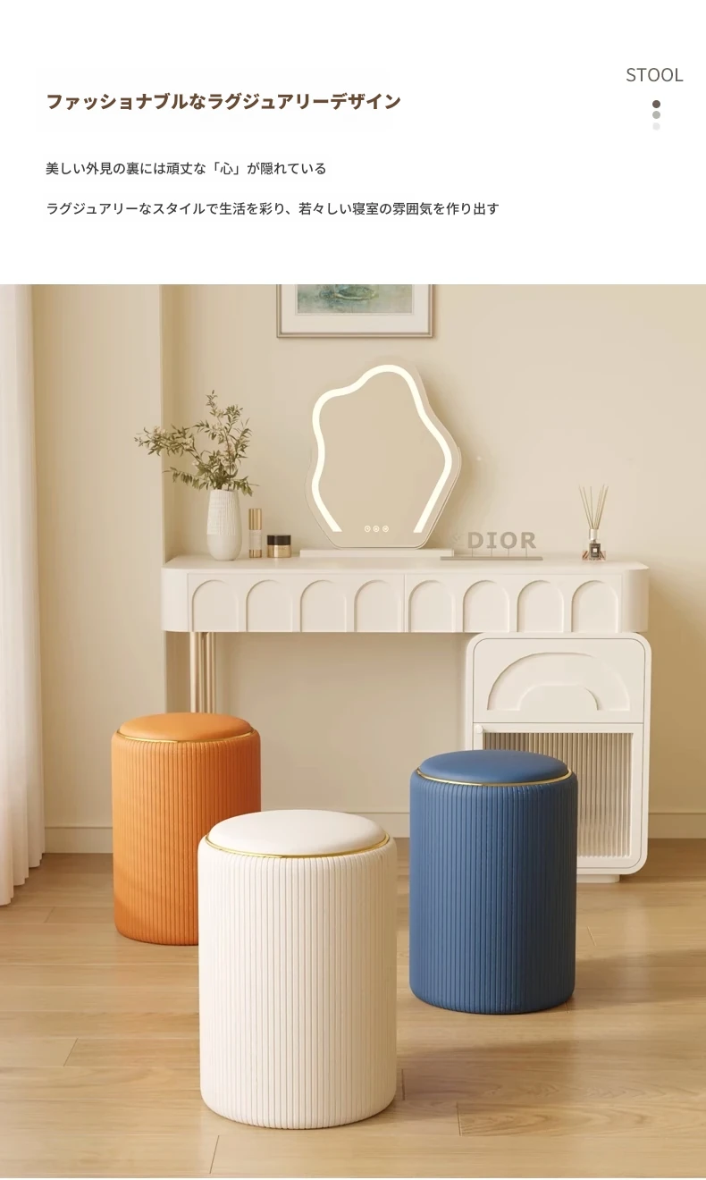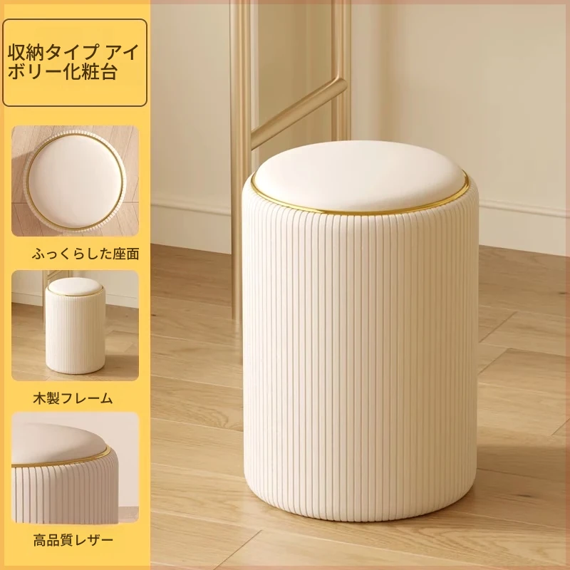 軽やかな贅沢感のある化粧台スツール - 美容・ネイルに最適!収納付きの丸椅子で、夢のようなクリーミーな雰囲気を演出する寝室用化粧スツール。あなたの美しさを引き立てる、完璧なアイテム!