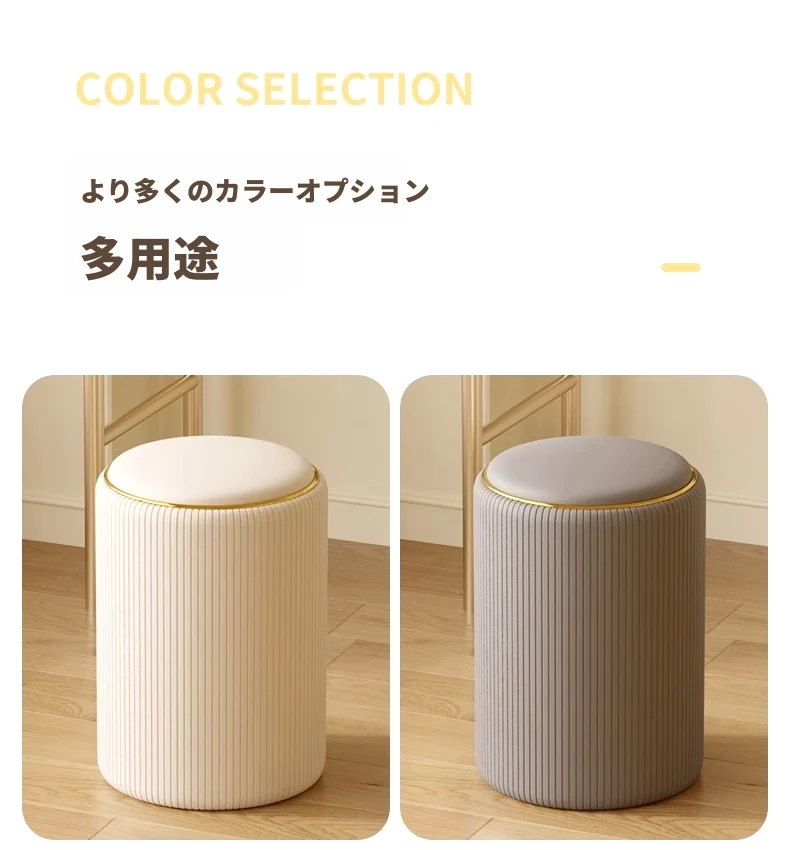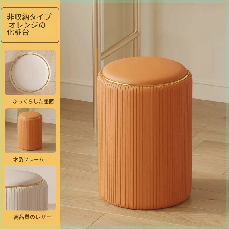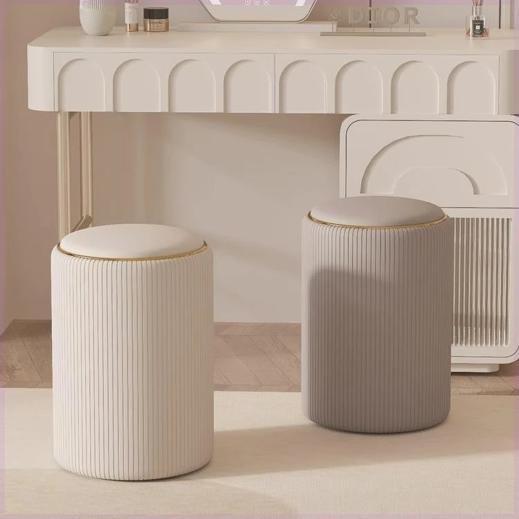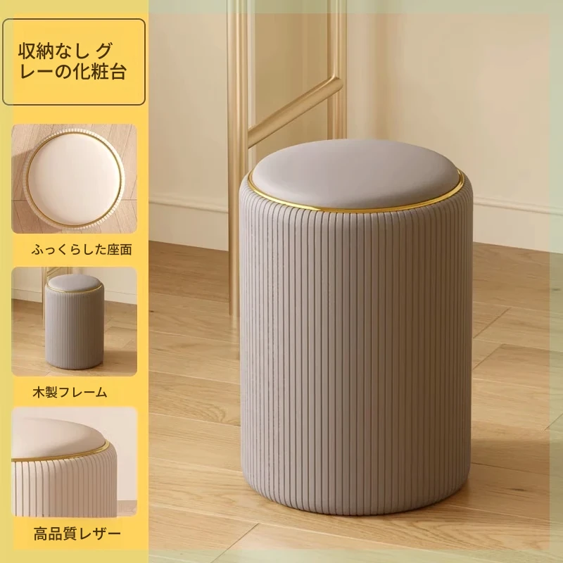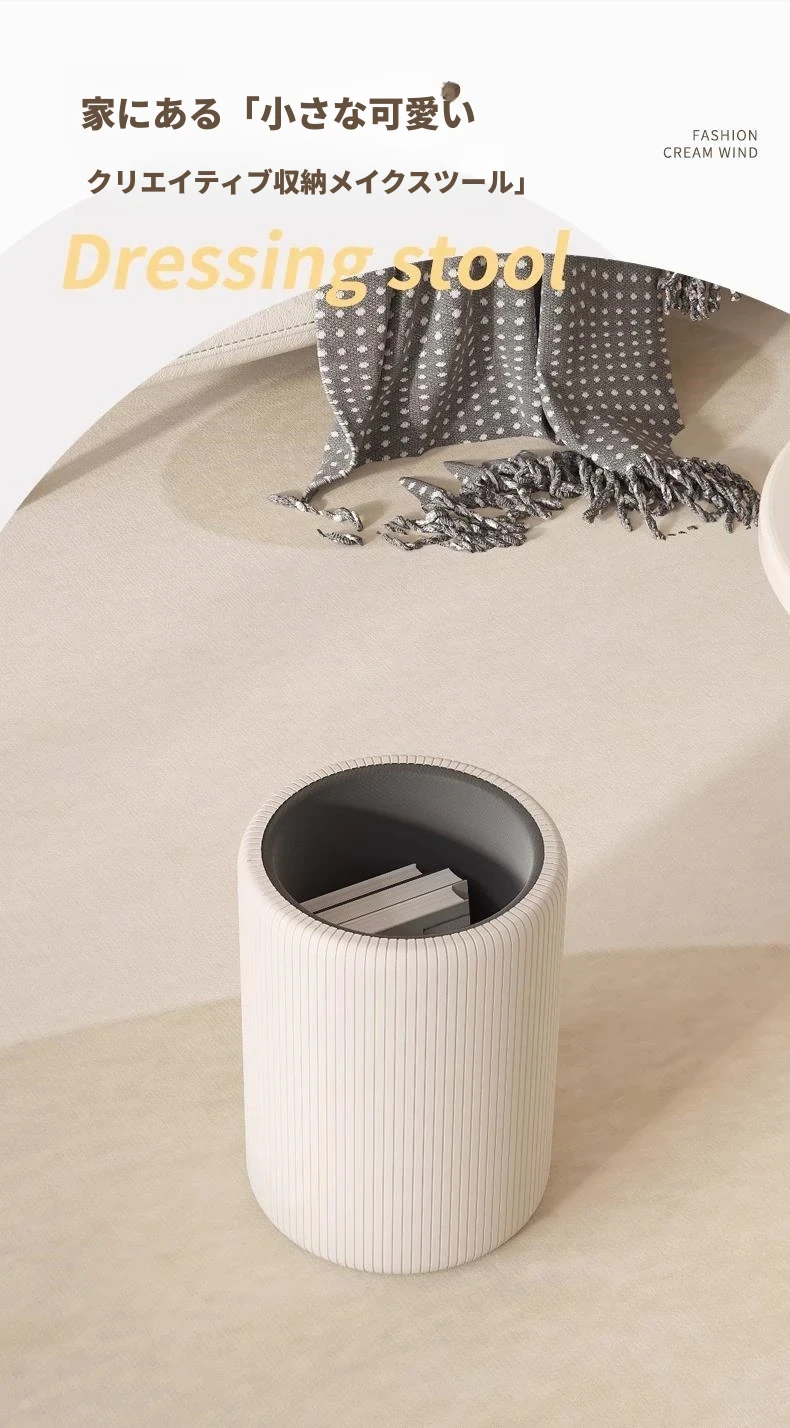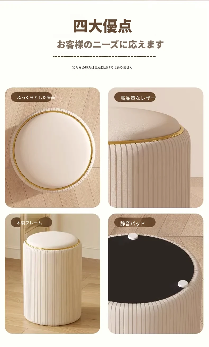 軽やかな贅沢感のある化粧台スツール - 美容・ネイルに最適!収納付きの丸椅子で、夢のようなクリーミーな雰囲気を演出する寝室用化粧スツール。あなたの美しさを引き立てる、完璧なアイテム!