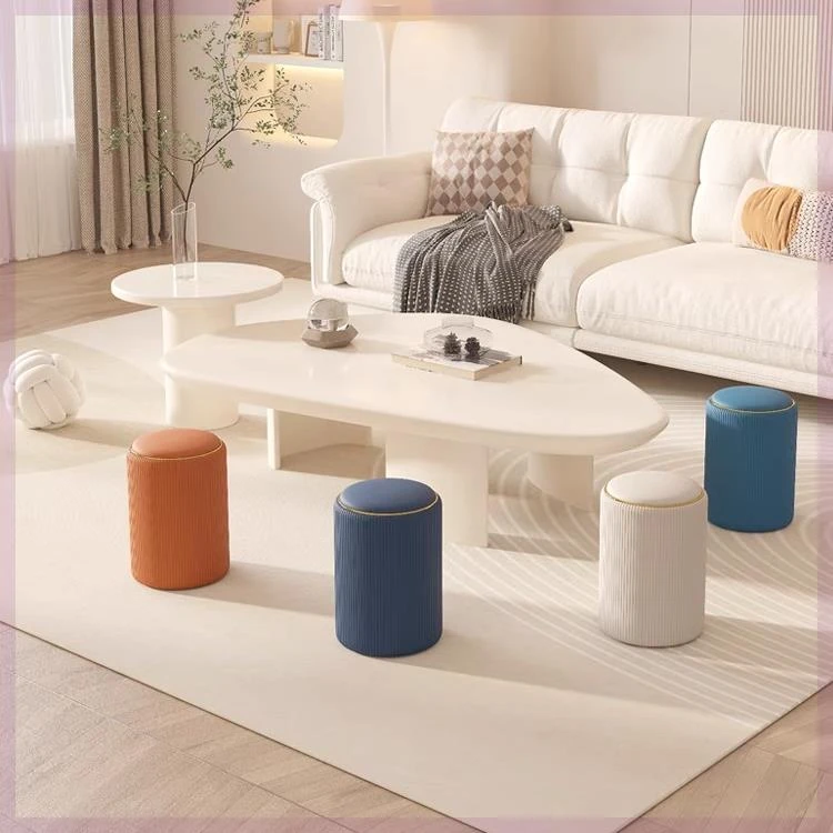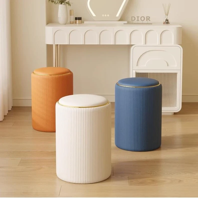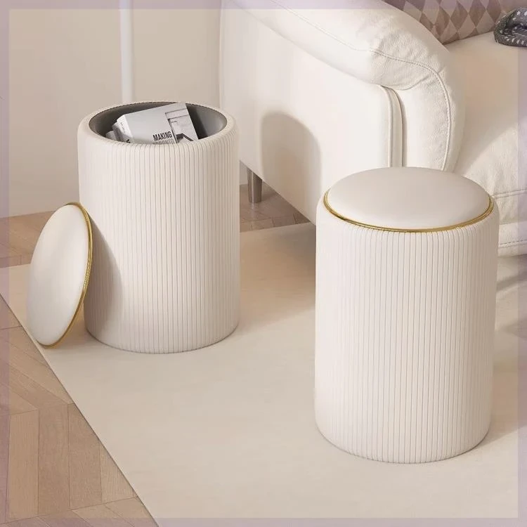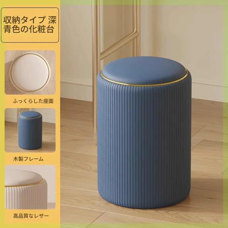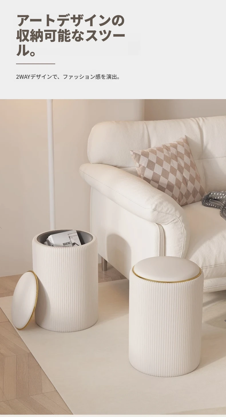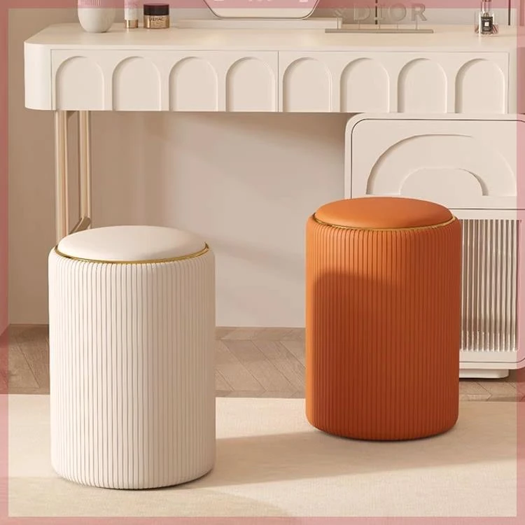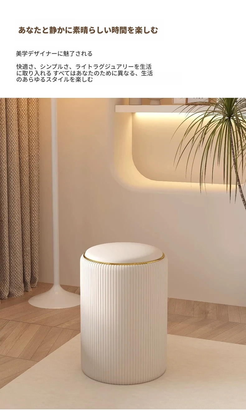 軽やかな贅沢感のある化粧台スツール - 美容・ネイルに最適!収納付きの丸椅子で、夢のようなクリーミーな雰囲気を演出する寝室用化粧スツール。あなたの美しさを引き立てる、完璧なアイテム!