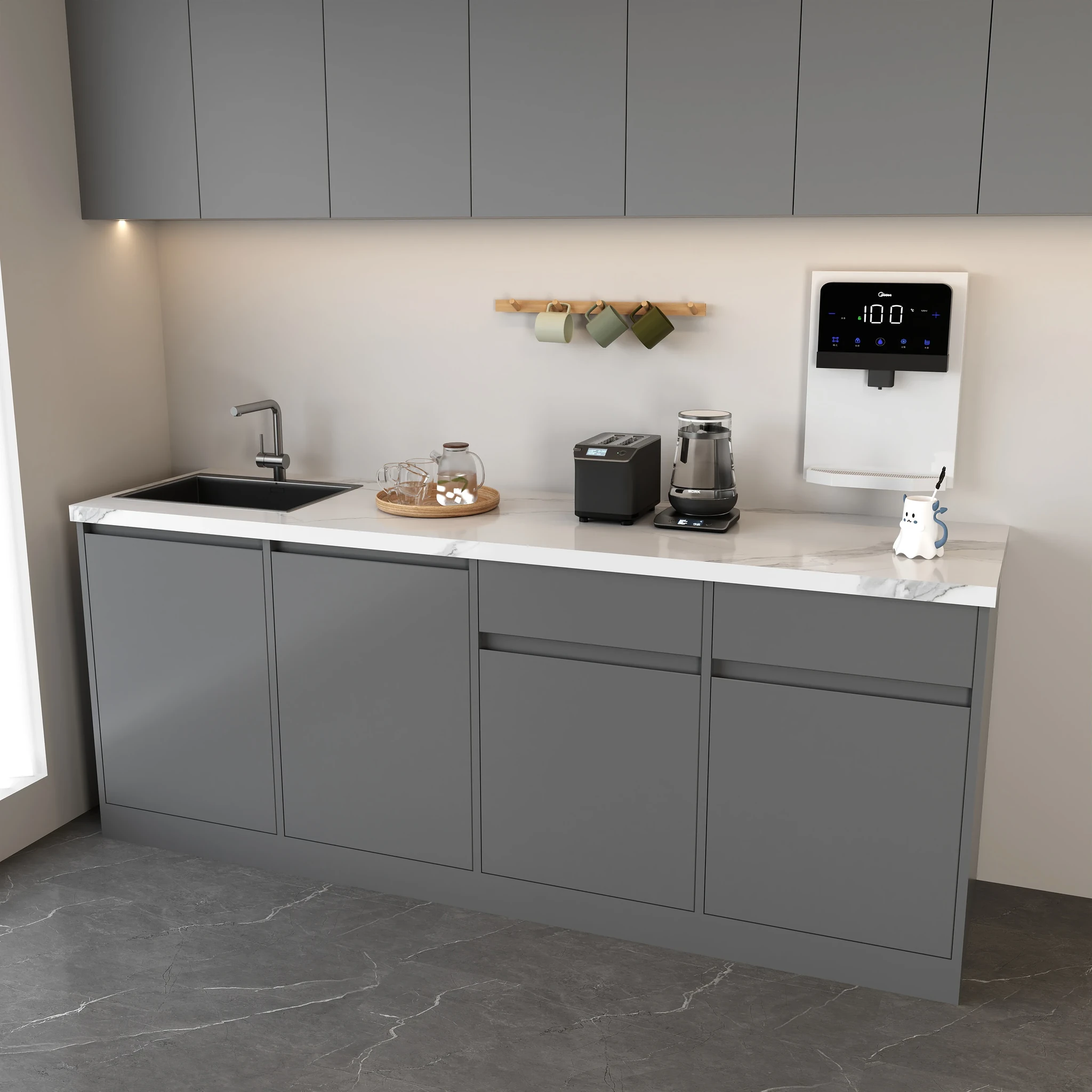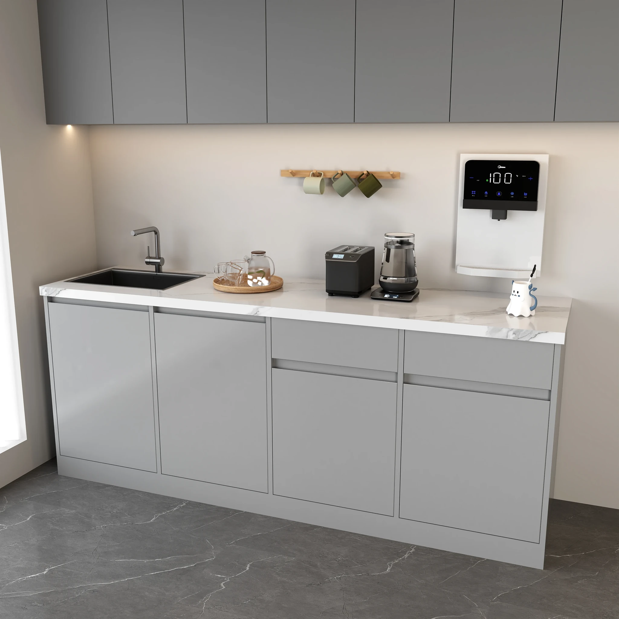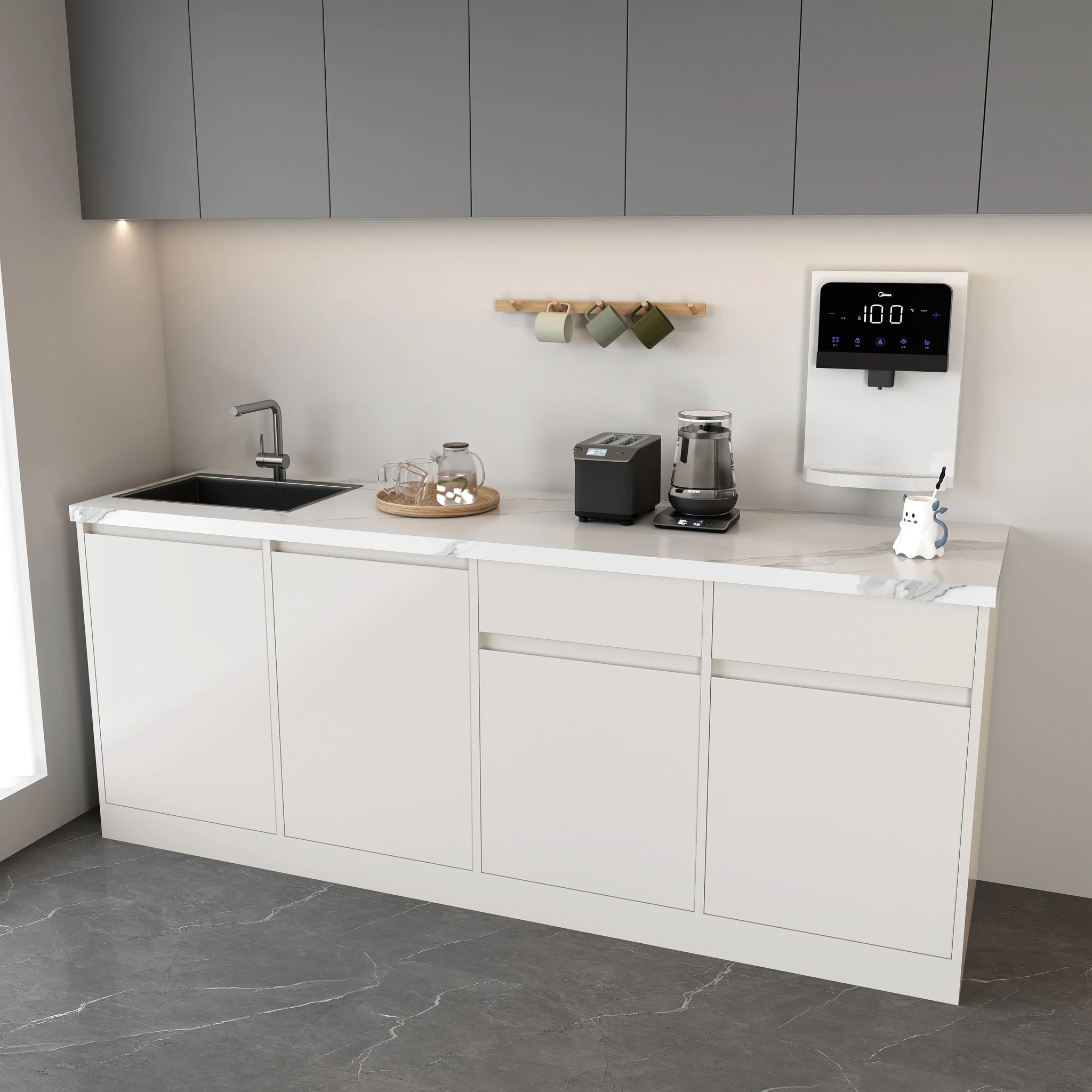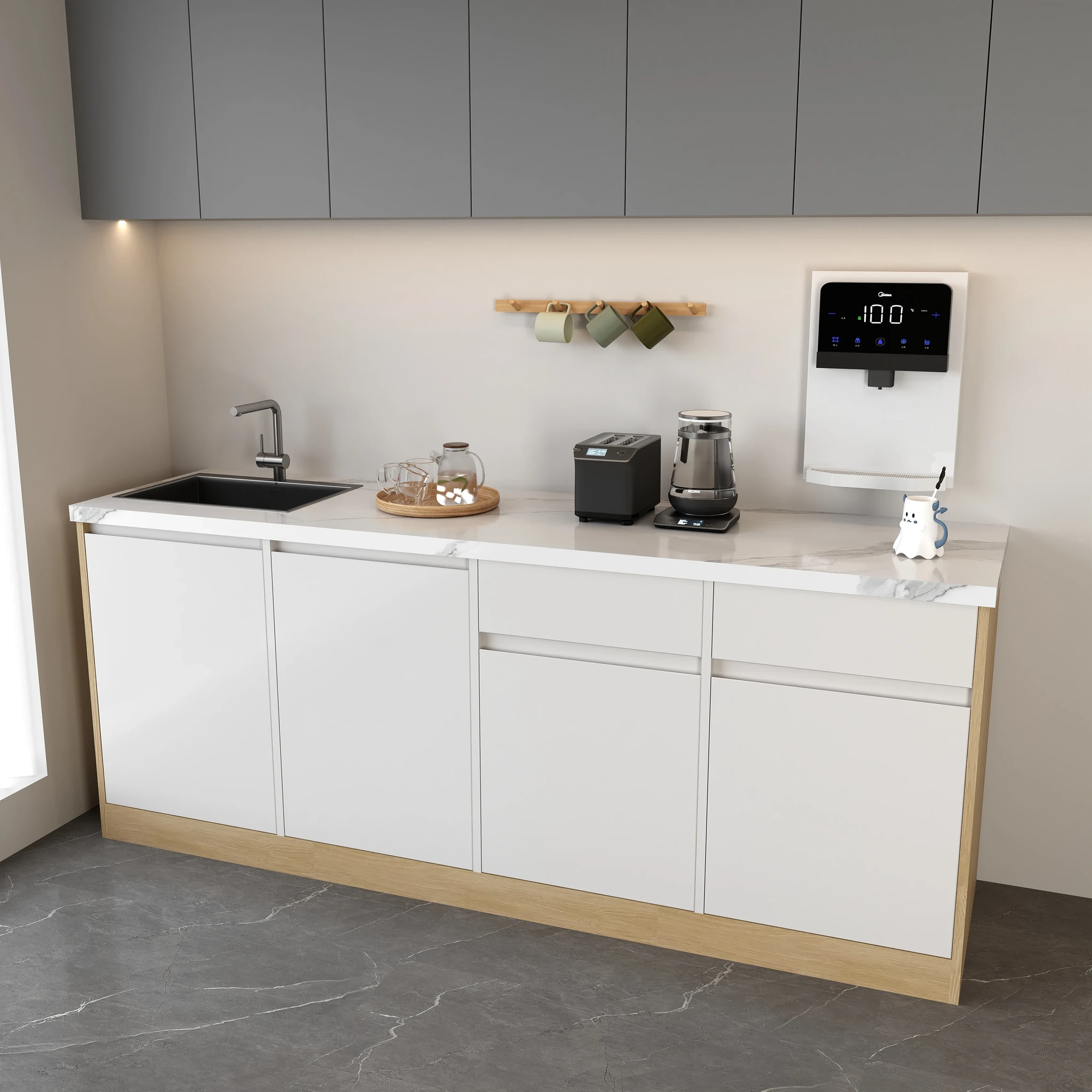 シンプルでスタイリッシュな大理石製バー台!商業用に最適な水バー一体型デザイン。壁にぴったりフィットし、オフィスや休憩スペースに最適なティー&コーヒーコーナー。使いやすさと美しさを兼ね備えたアイテム!