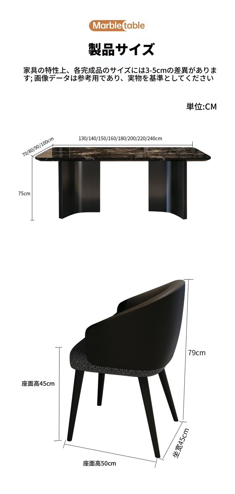 イタリアン大理石ダイニングテーブル【2.4m】+6椅子
