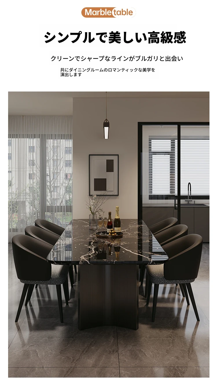 イタリアン大理石ダイニングテーブル【2.2m】+8椅子