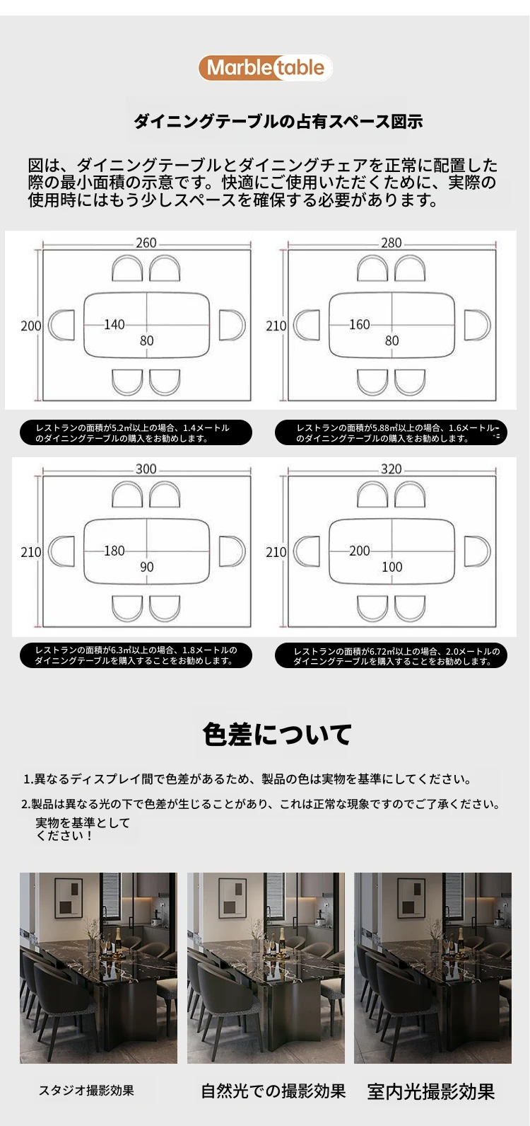 イタリアン大理石ダイニングテーブル【2.2m】+6椅子