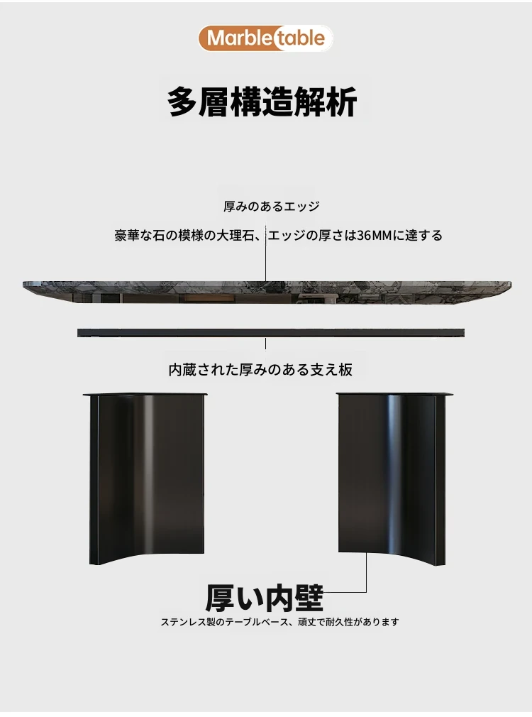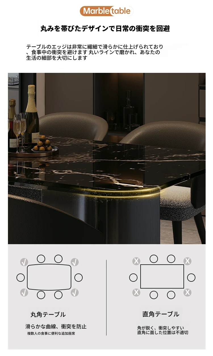 イタリアン大理石ダイニングテーブル【1.8m】+8椅子