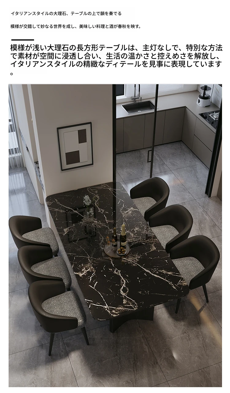 イタリアン大理石ダイニングテーブル【1.8m】+6椅子