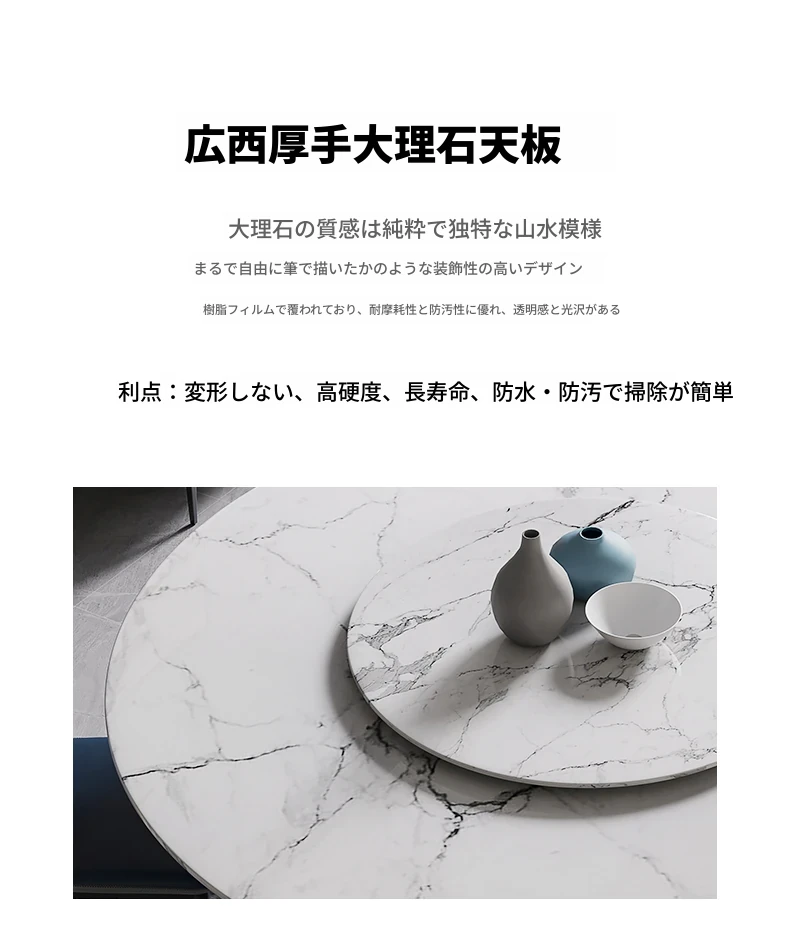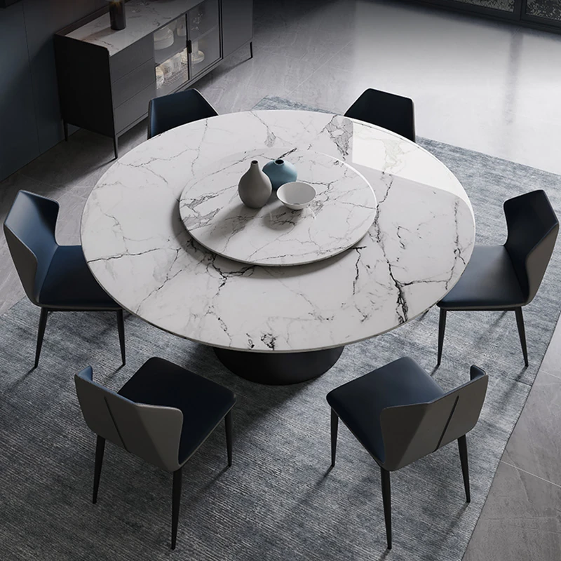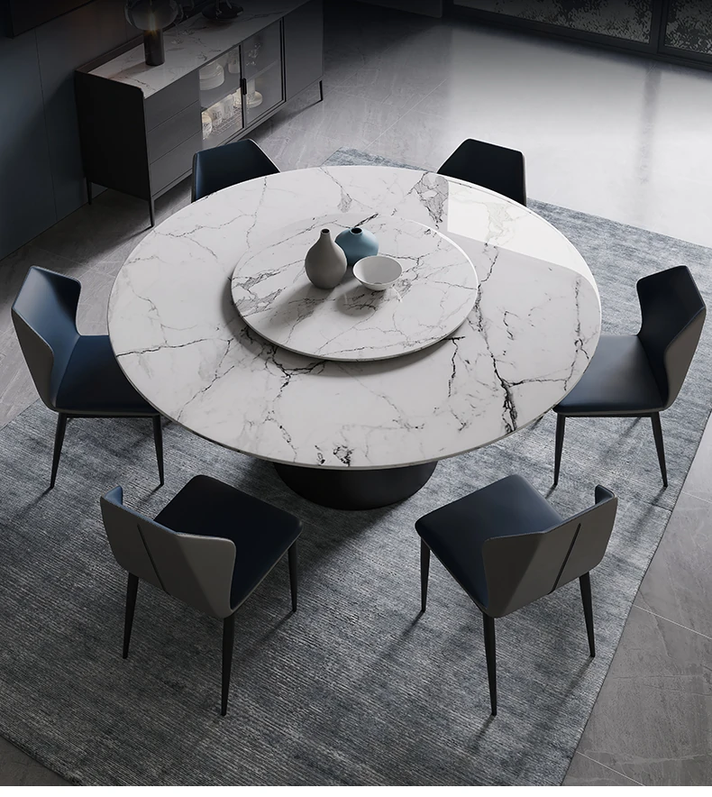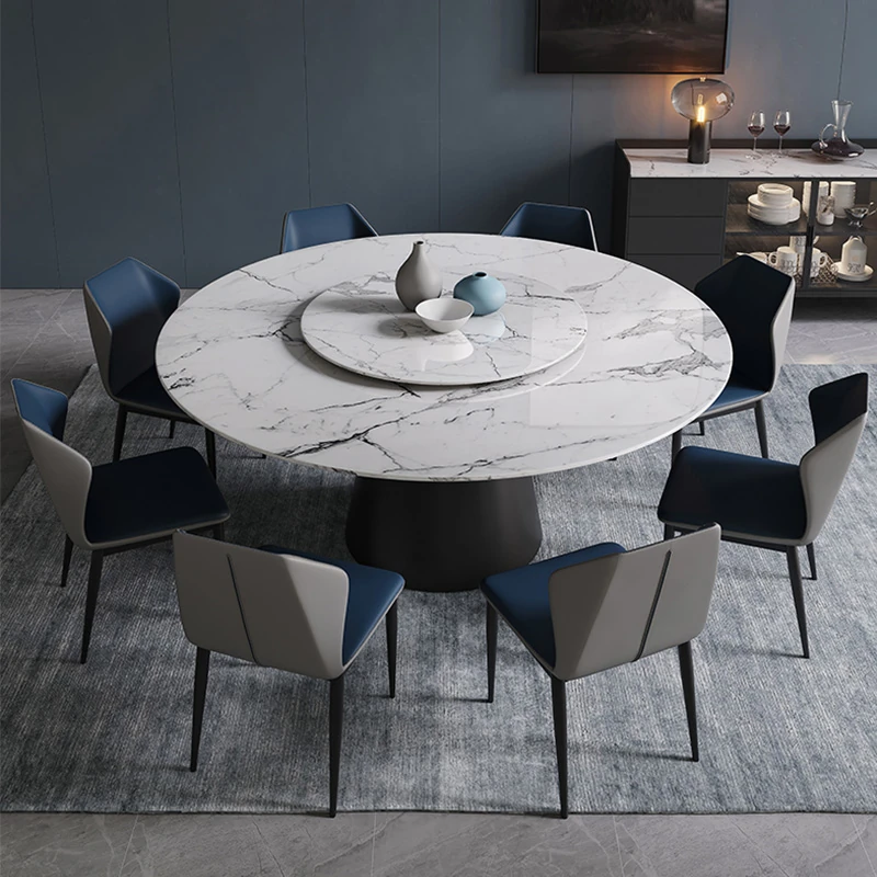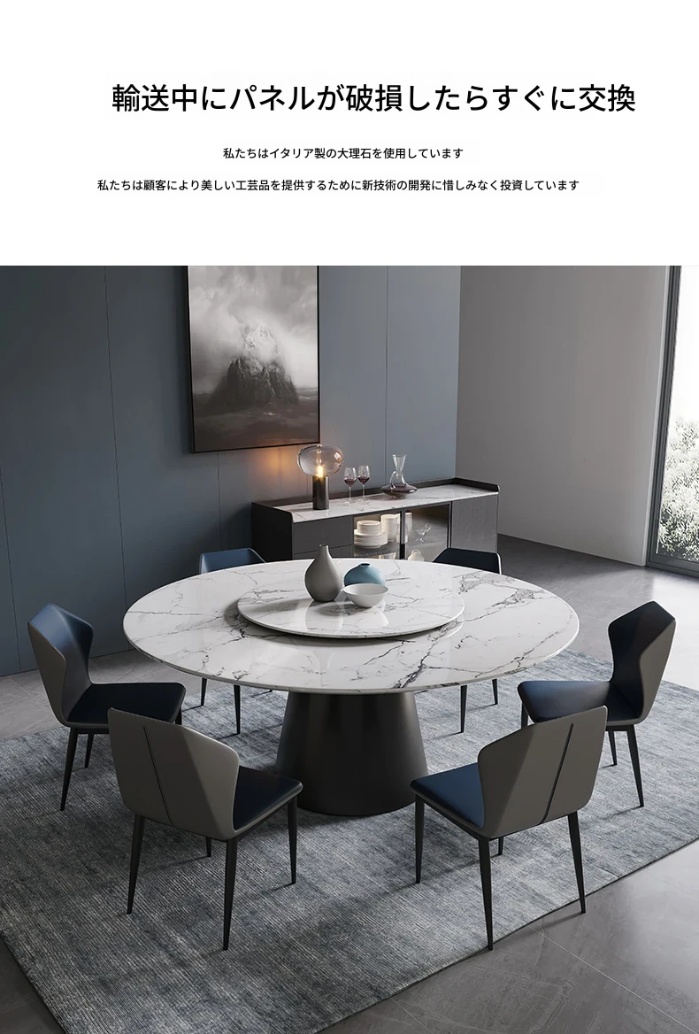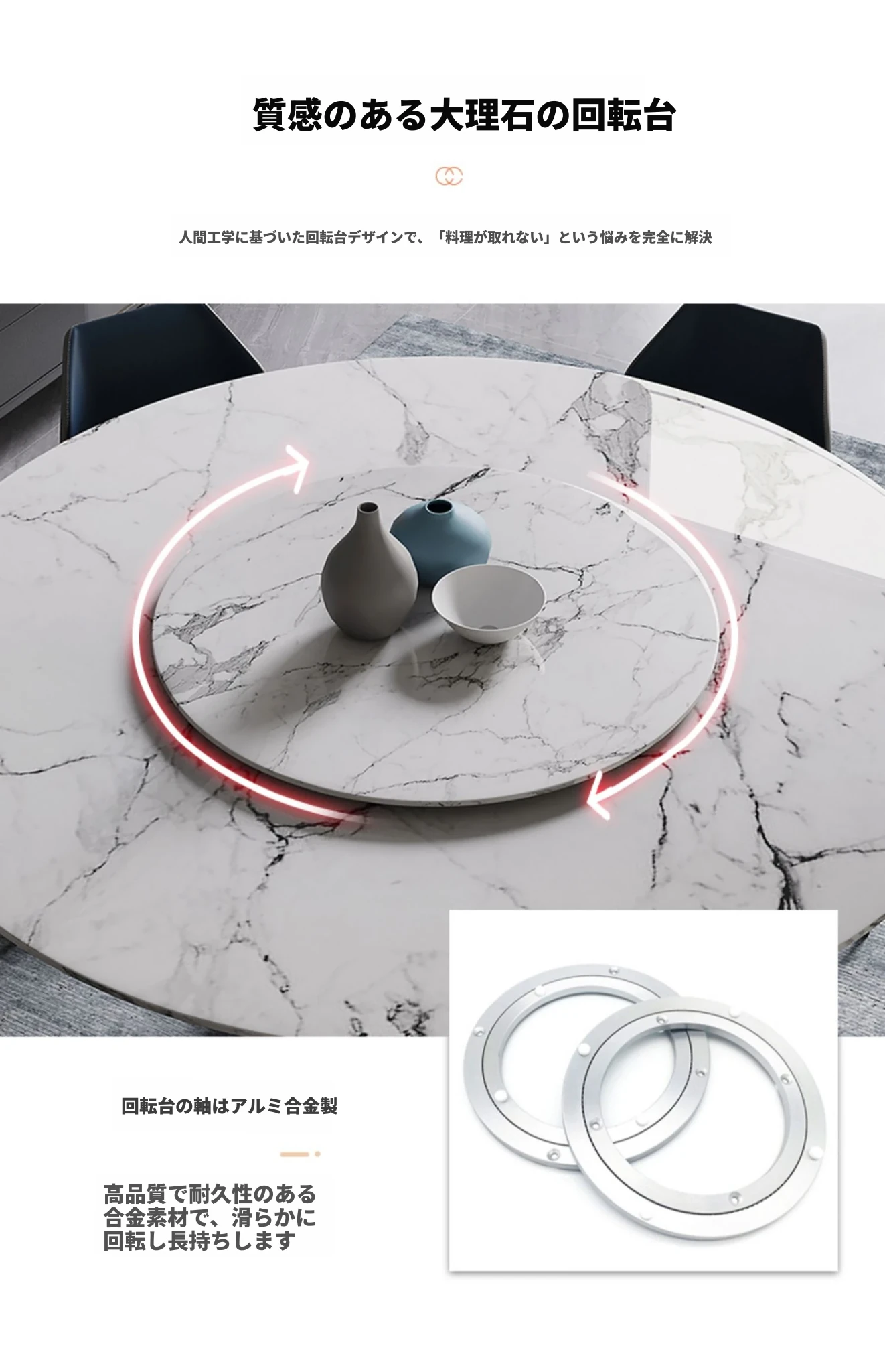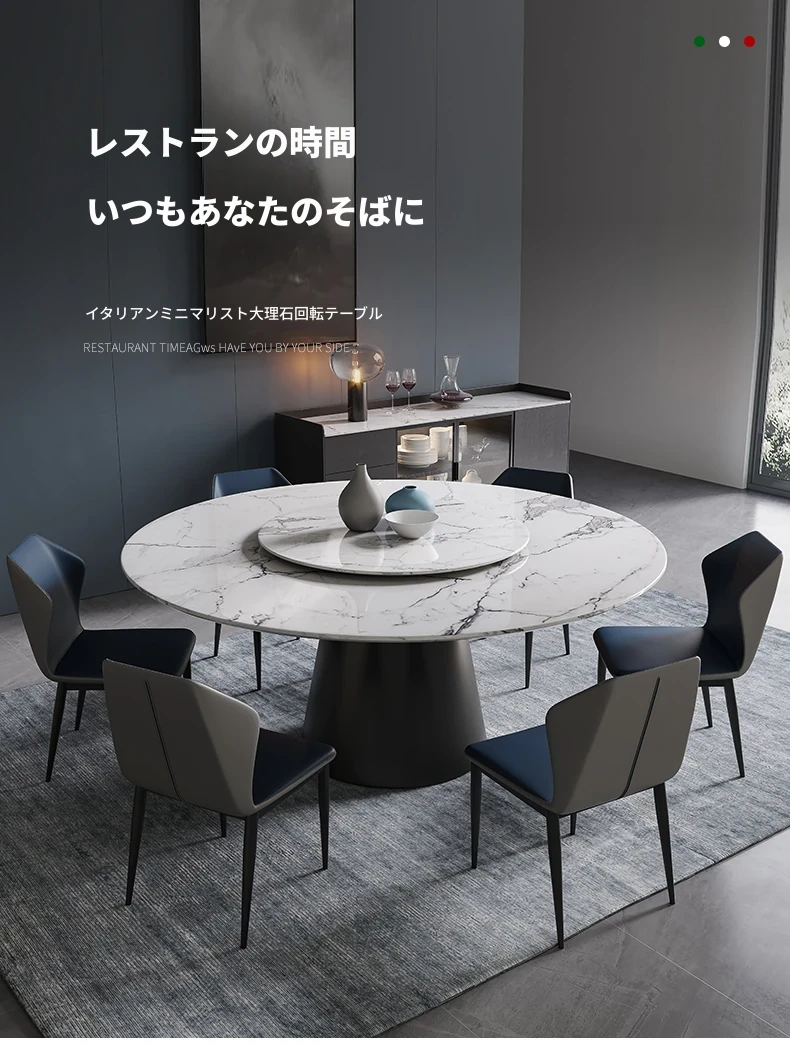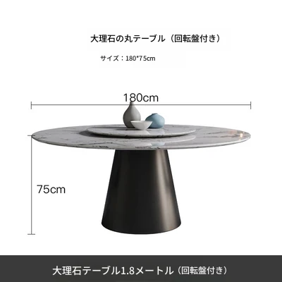 軽やかでモダンな1.8メートル大理石ラウンドダイニングテーブルセット - 最大10人用の回転式テーブル、洗練されたデザインで家族や友人との特別なひとときを演出します。