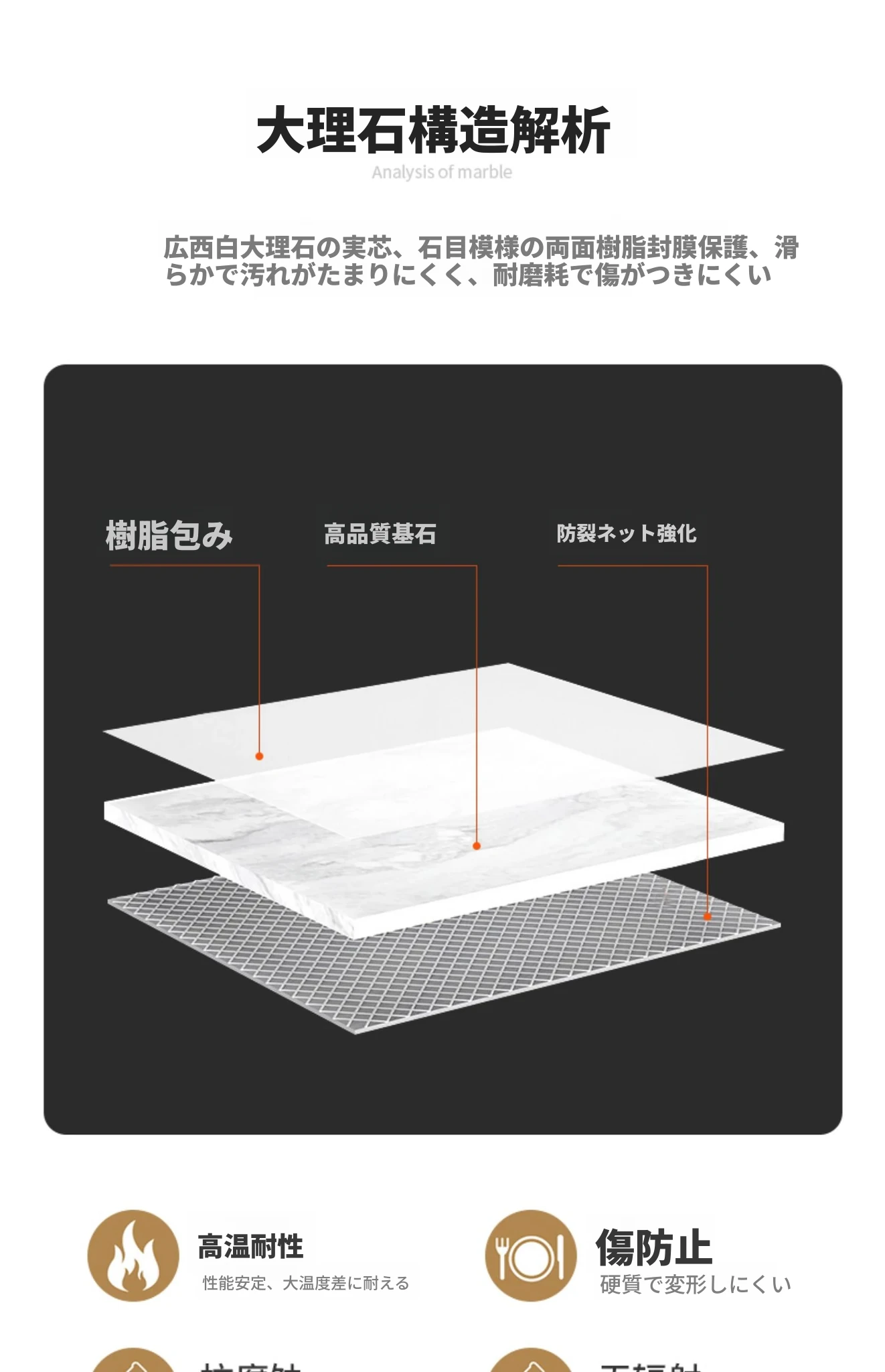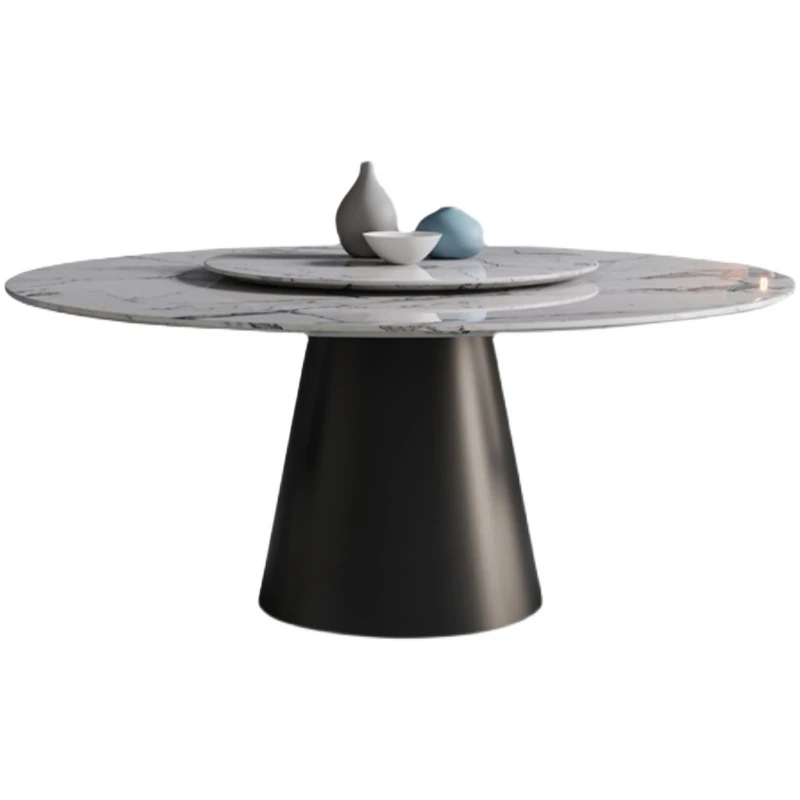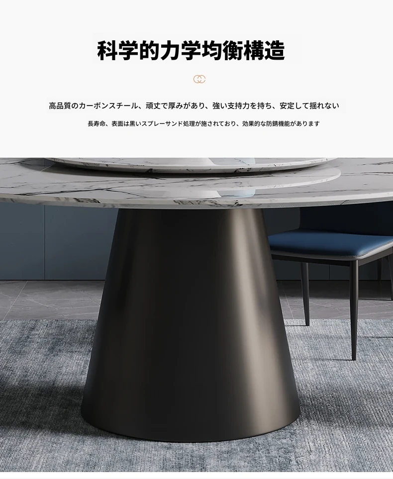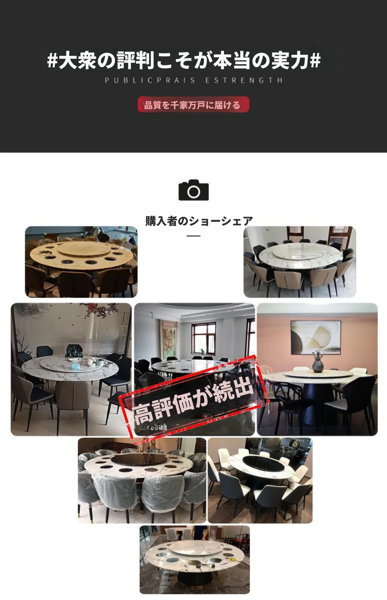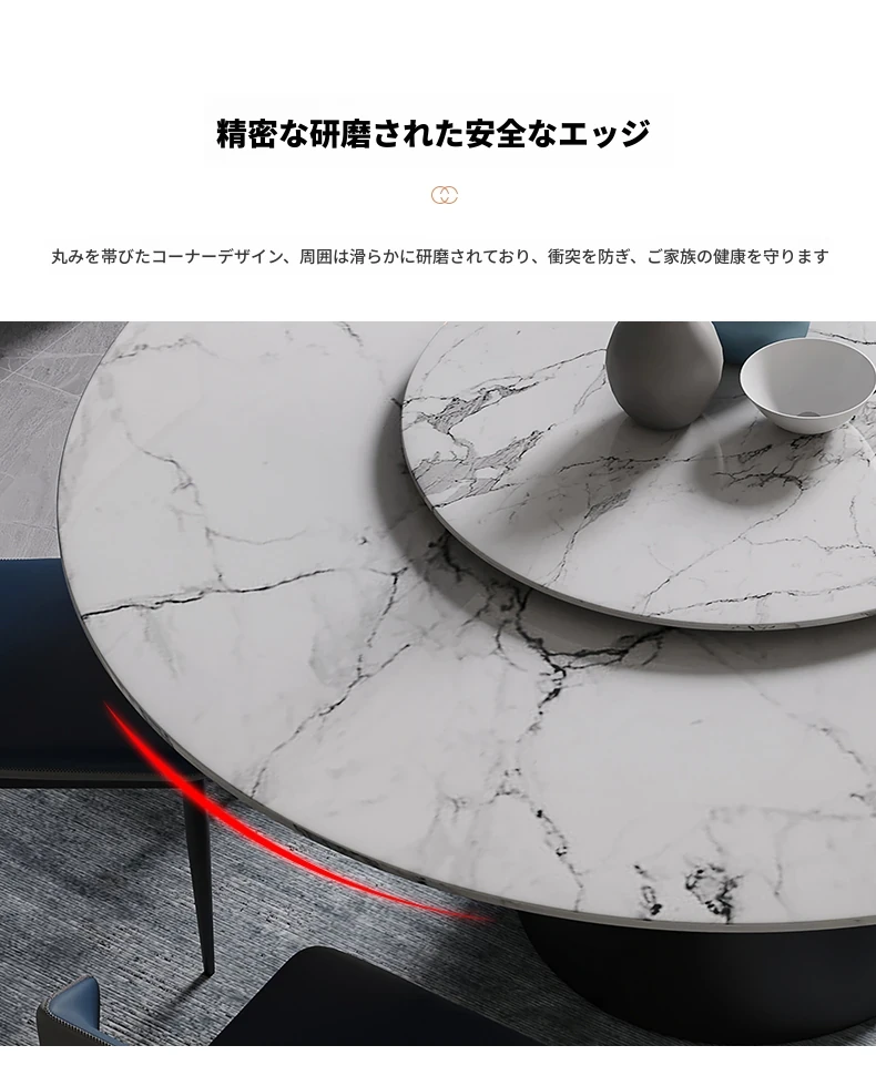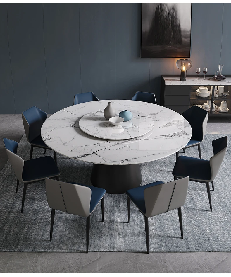 軽やかでモダンな1.8メートル大理石ラウンドダイニングテーブルセット - 最大10人用の回転式テーブル、洗練されたデザインで家族や友人との特別なひとときを演出します。