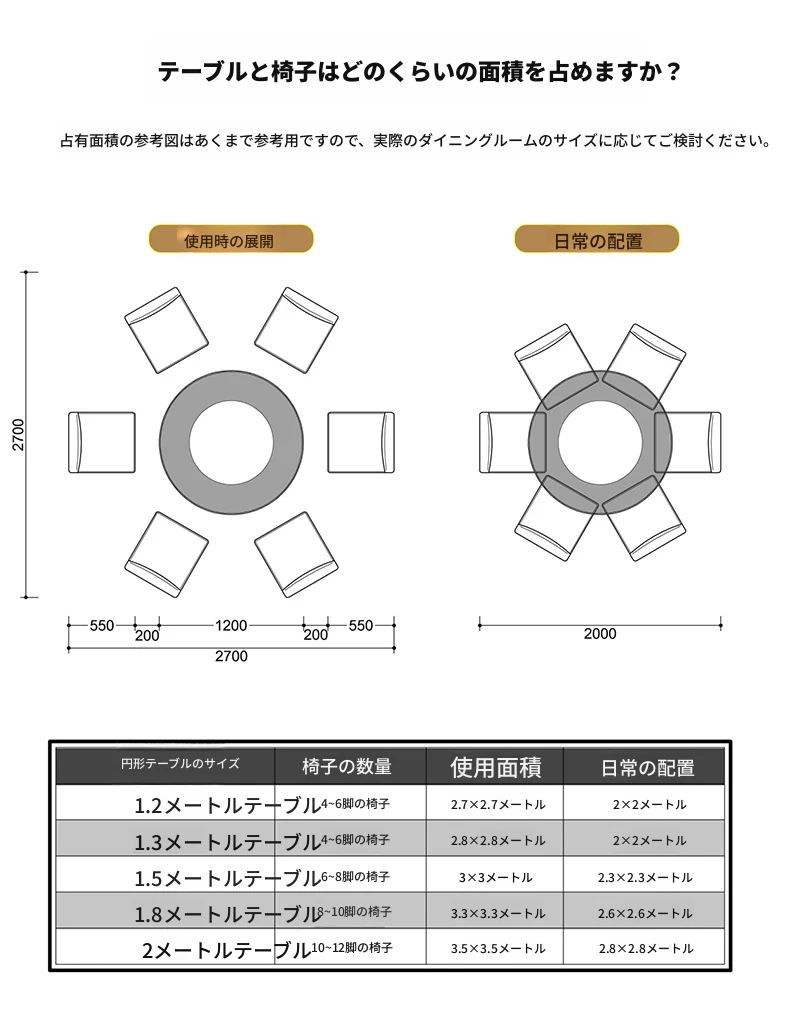 1.2メートル円卓0.7メートル回転盤+6脚椅子