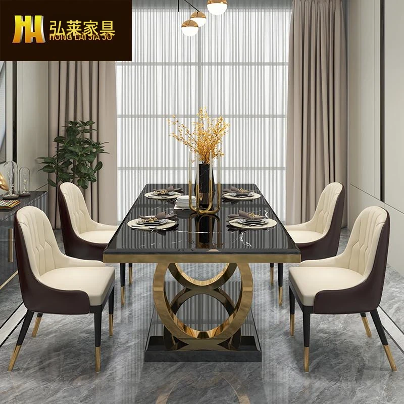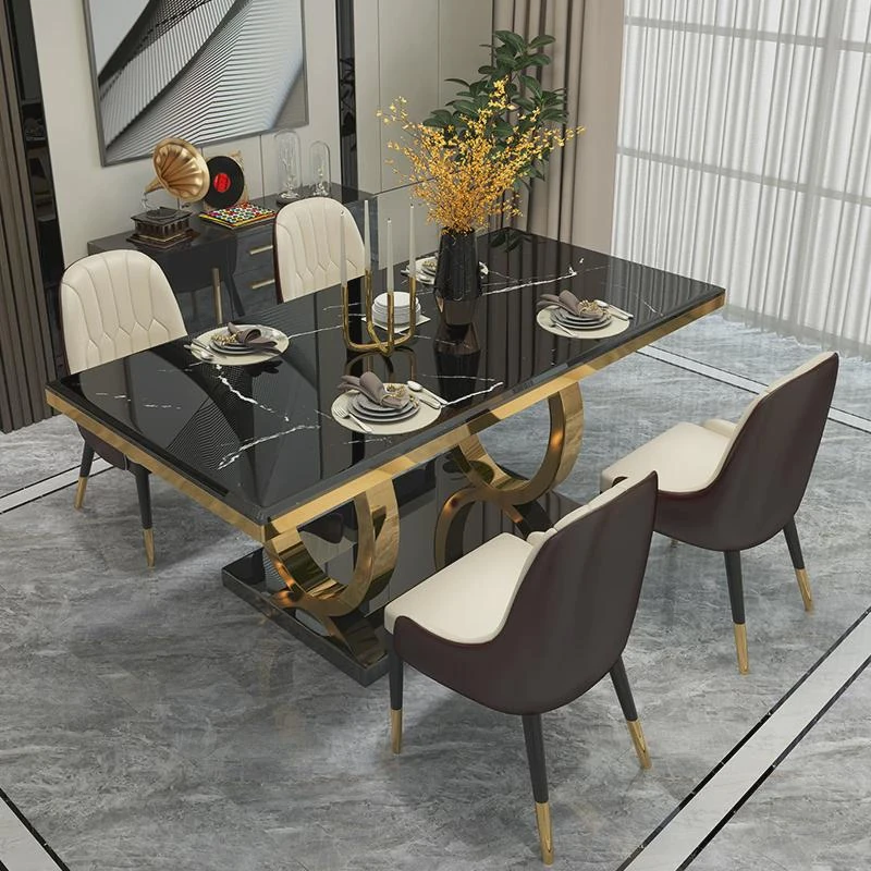 ラグジュアリーな後現代風大理石ダイニングテーブル&チェアセット - シンプルで洗練されたデザイン、小さなお部屋にもぴったりな長方形タイプ!快適な食卓を演出します。