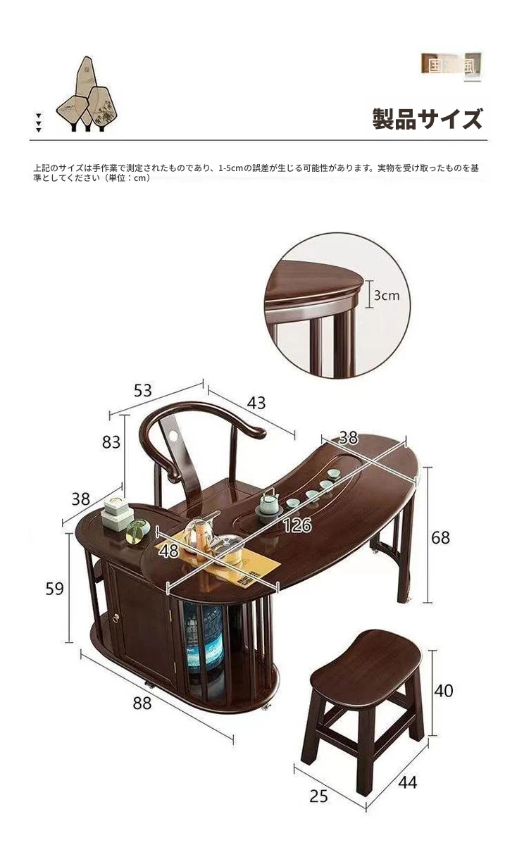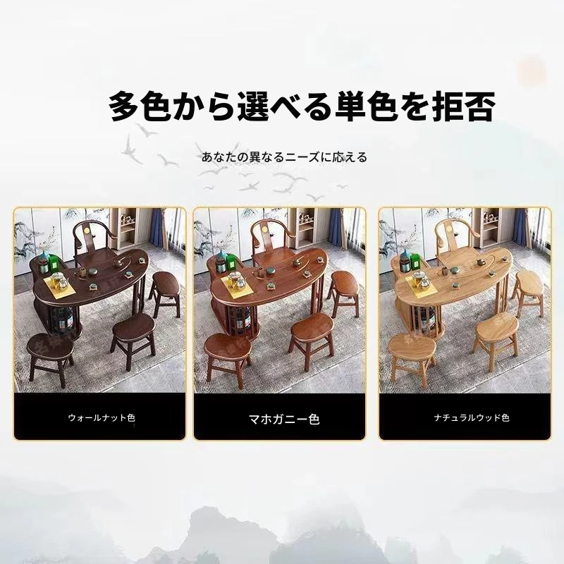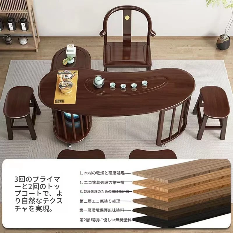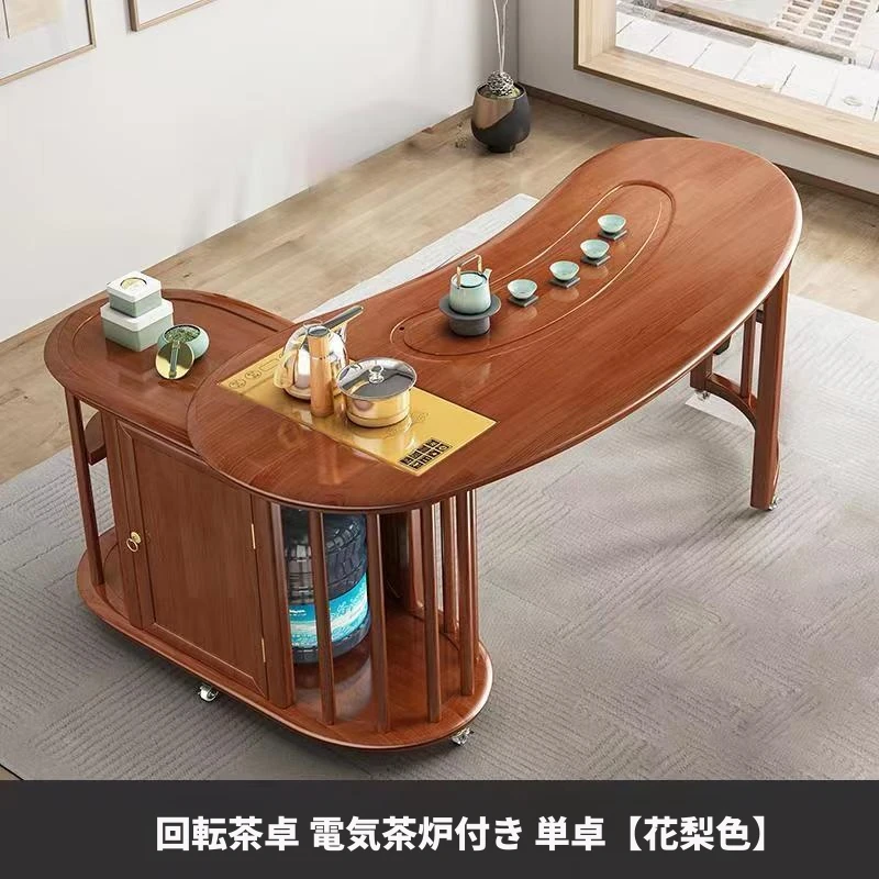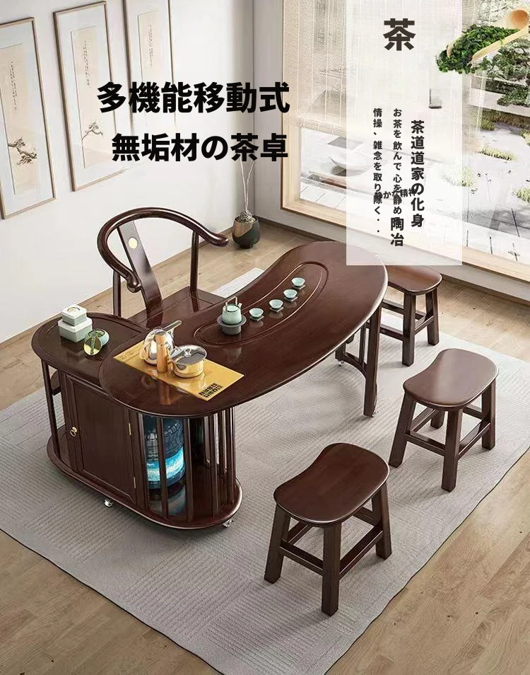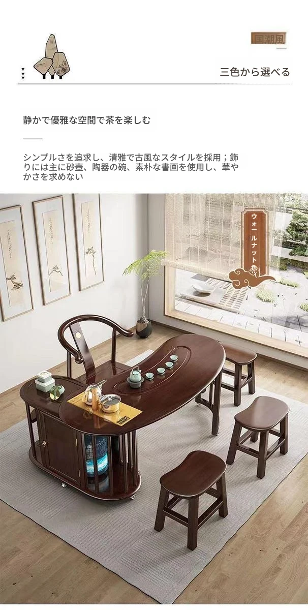 新中式実木回転式ティーテーブル&チェアセット - バルコニーに最適、移動可能で多機能のティーサーバー一体型。快適なティータイムをお楽しみください!