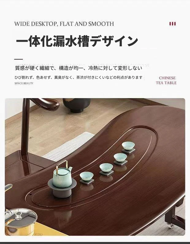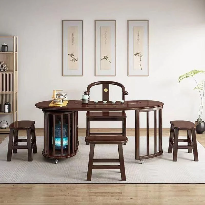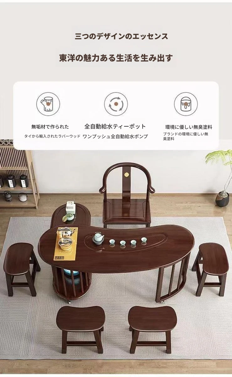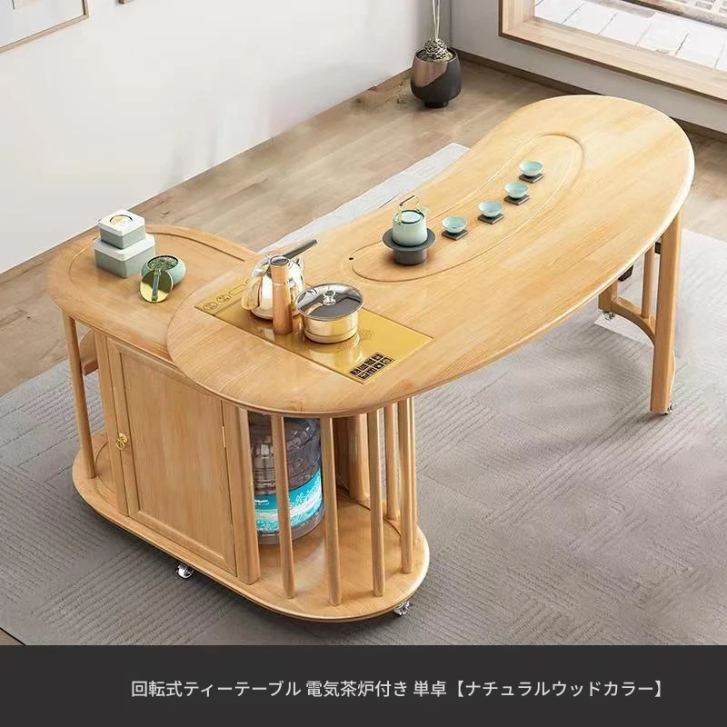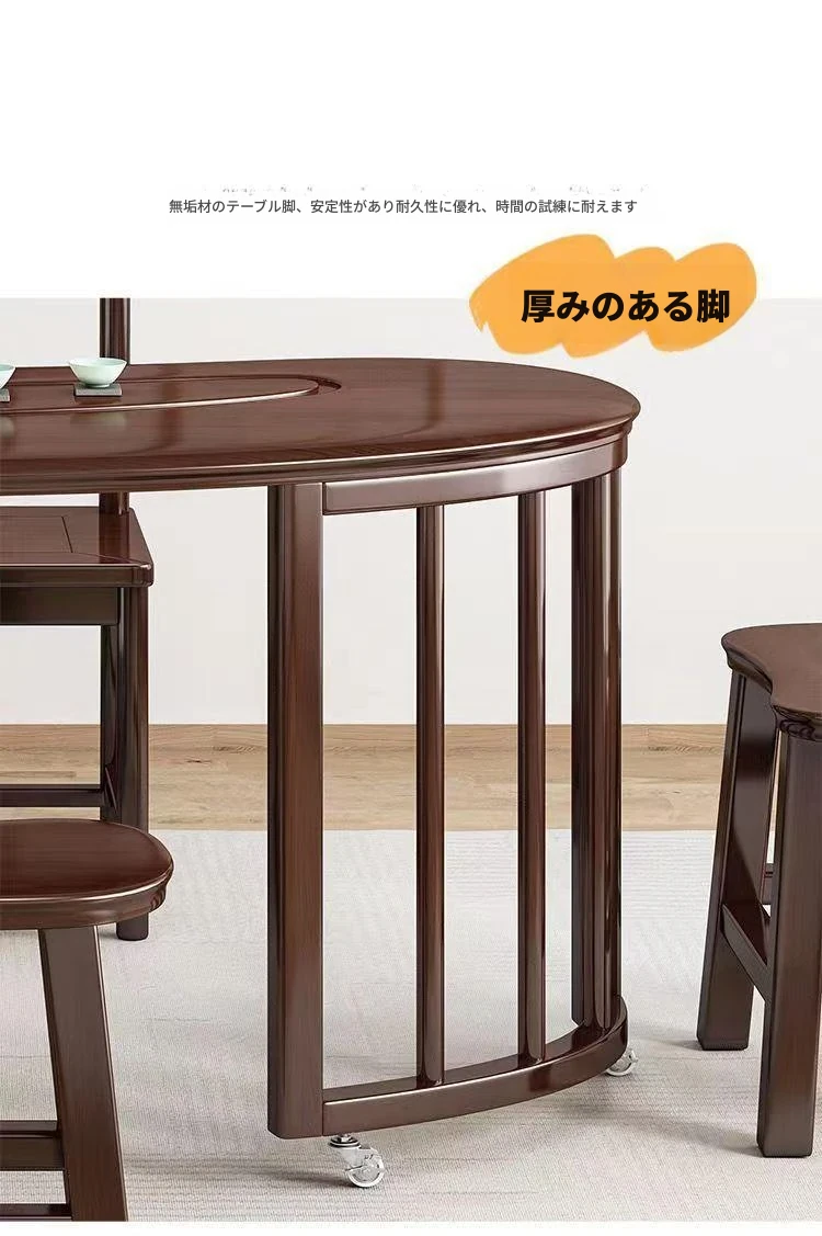 新中式実木回転式ティーテーブル&チェアセット - バルコニーに最適、移動可能で多機能のティーサーバー一体型。快適なティータイムをお楽しみください!
