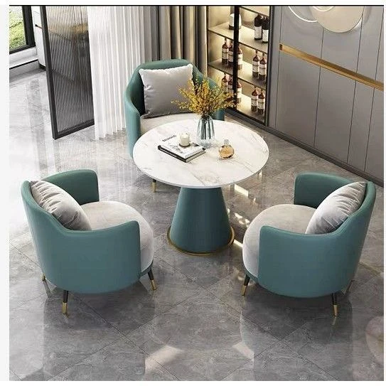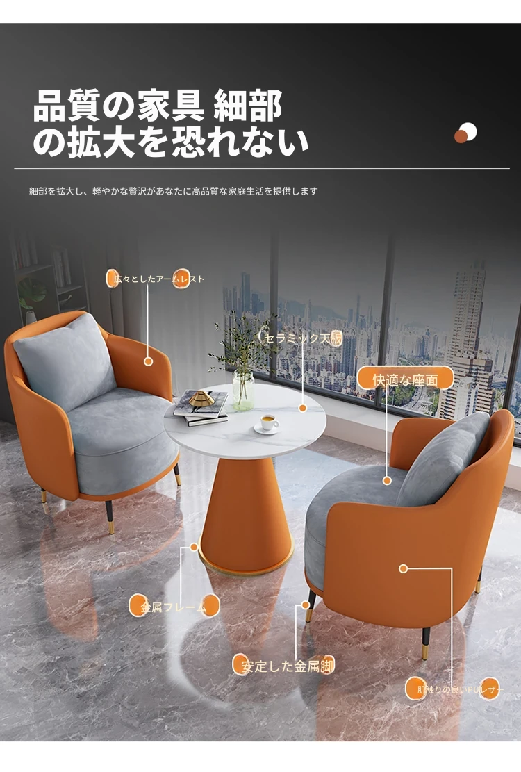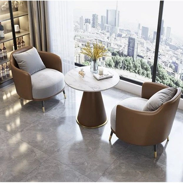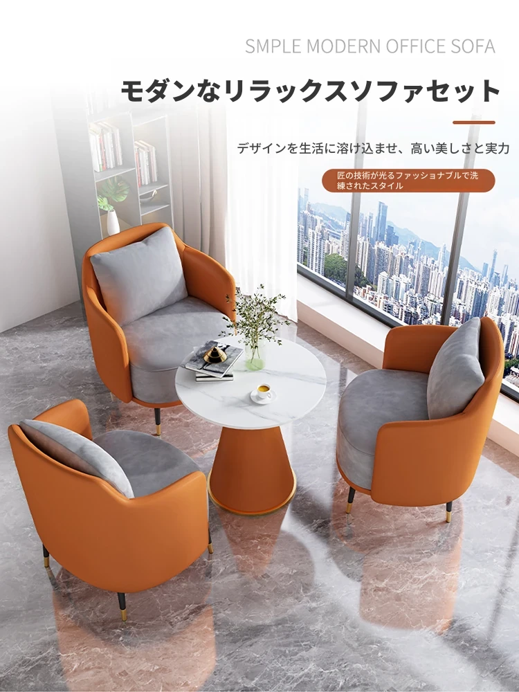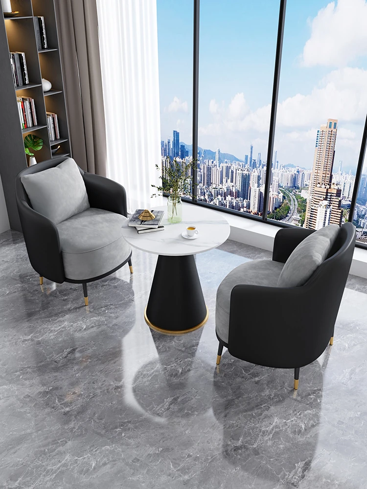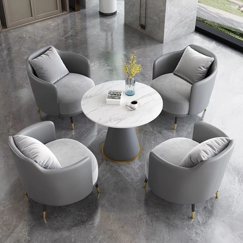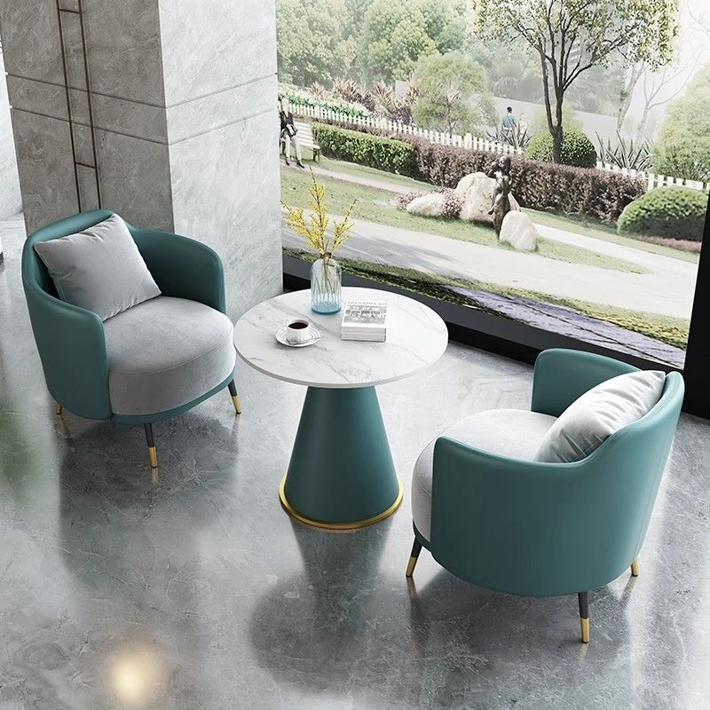 接客に最適!洽談テーブル&チェアセット - 売場、カフェ、ホテルにぴったりなリラックスソファとスタイリッシュな岩板テーブルで、優雅なひとときをお楽しみください。