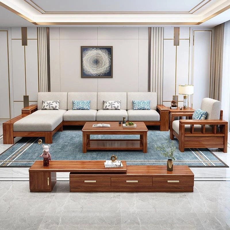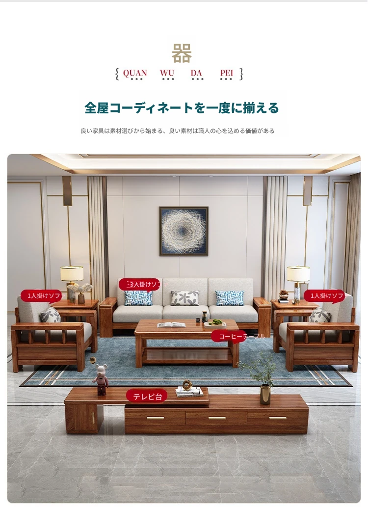 五人掛けソファ+貴妃椅+ティーキャビネット+ロングコーヒーテーブル+テレビ台