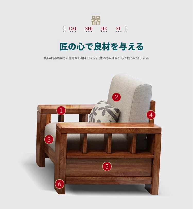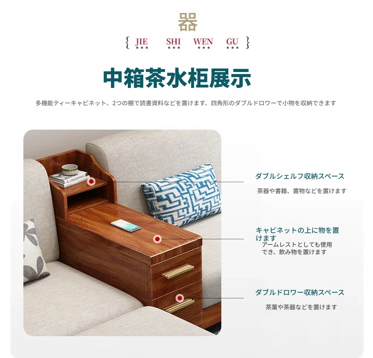 四人掛けソファ+貴妃椅+ティーキャビネット+ロングコーヒーテーブル
