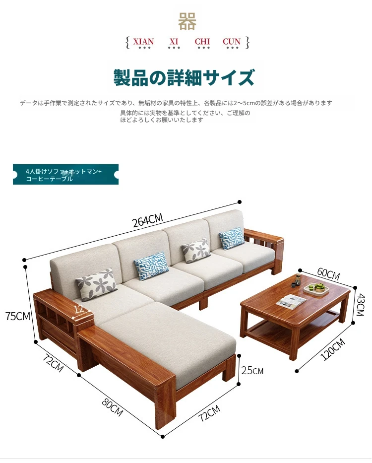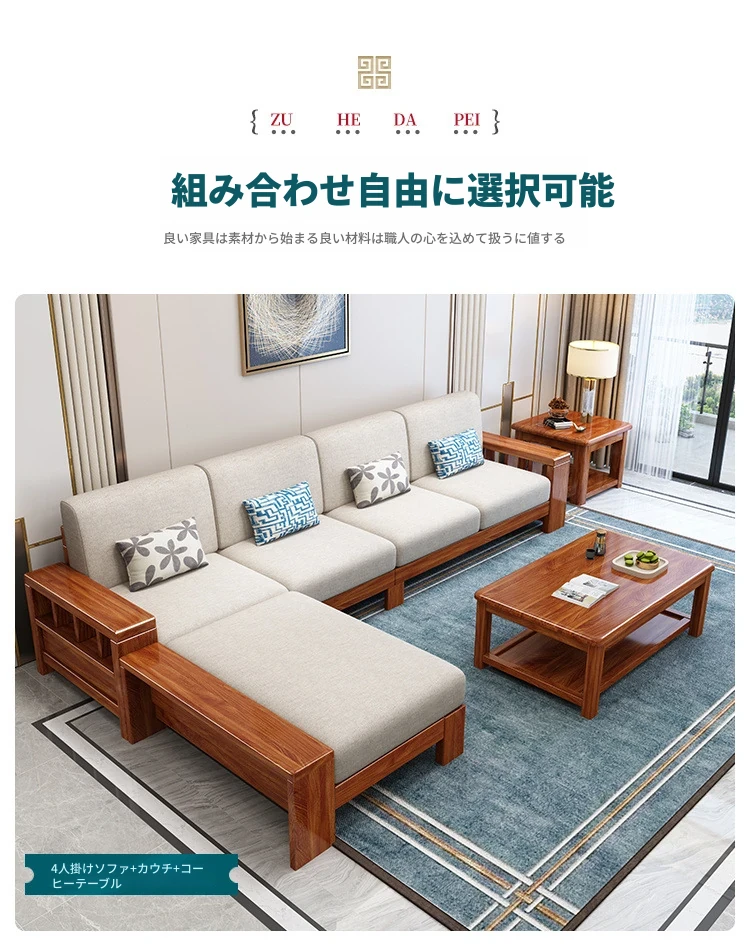 四人掛けソファ+貴妃椅+コーヒーテーブル【プロモーションセット】