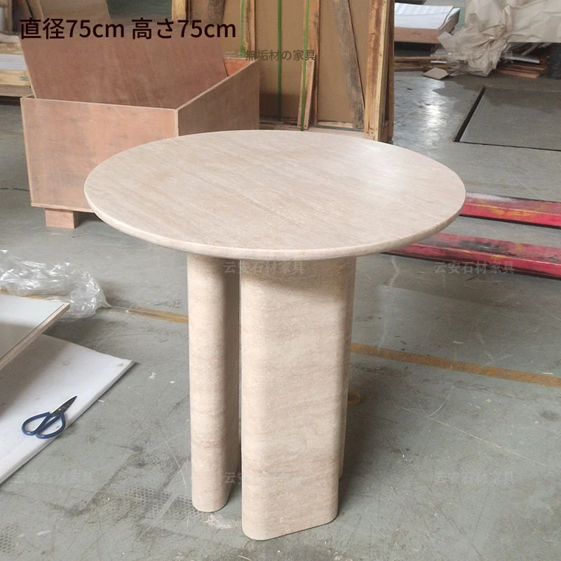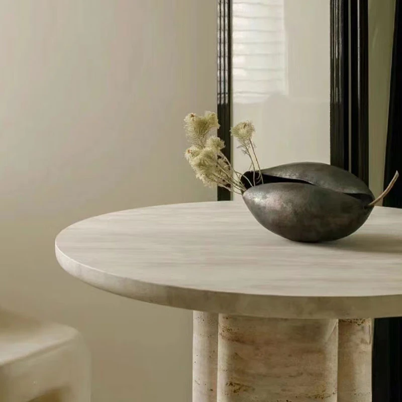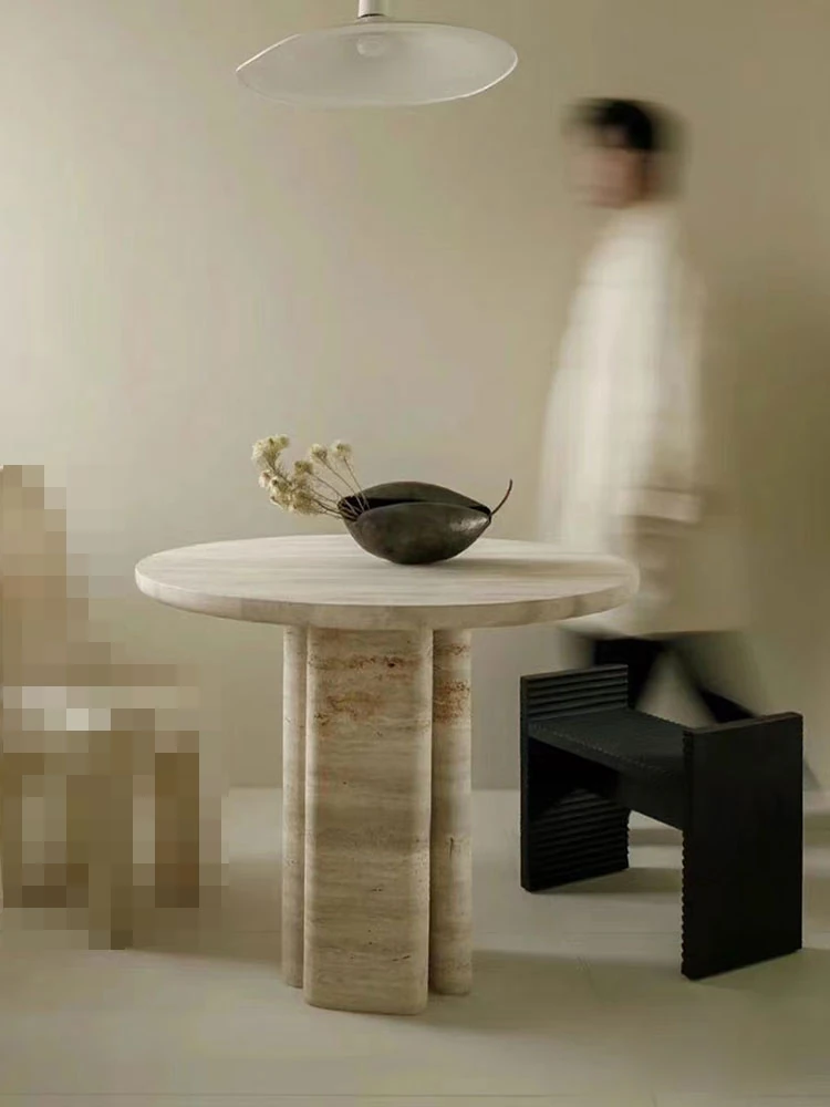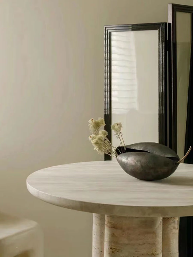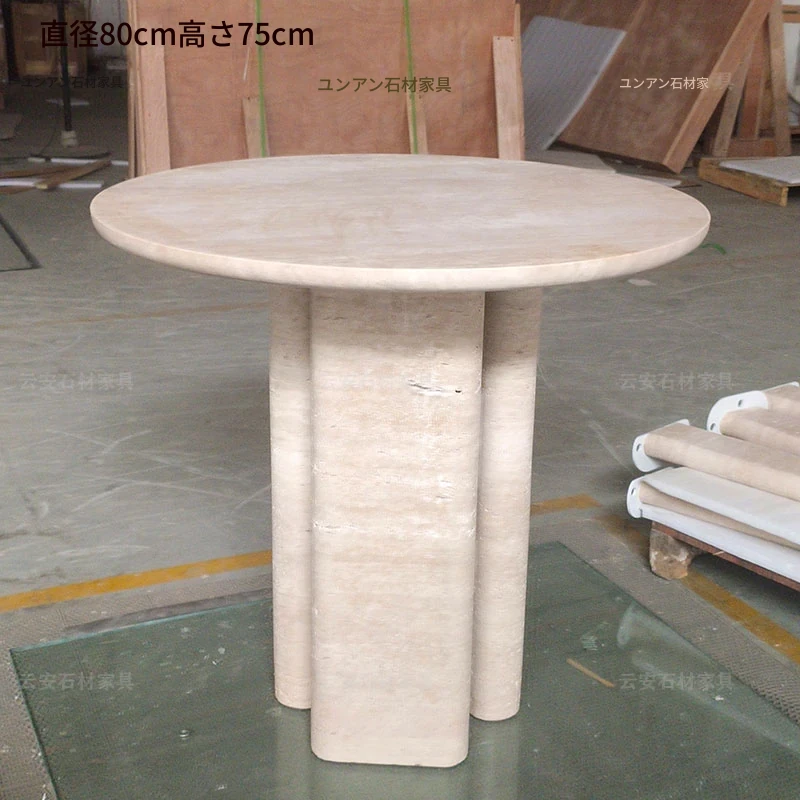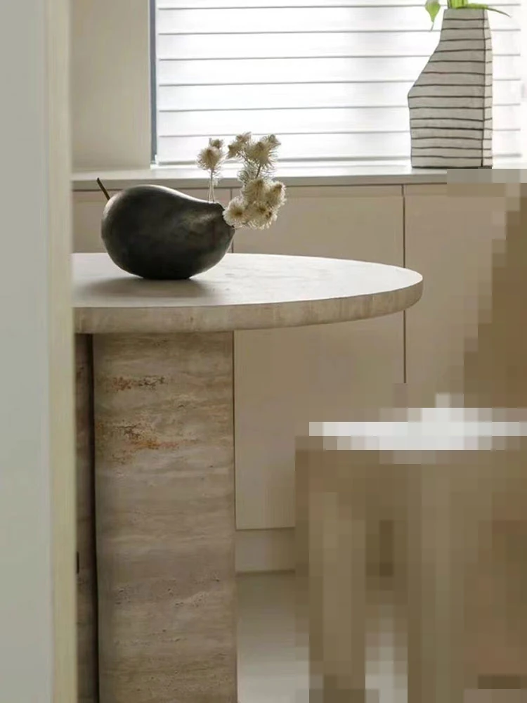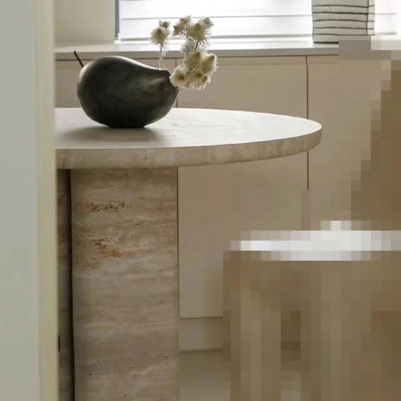 侘寂スタイルの高級感漂う天然大理石ダイニングテーブル - 小型住宅やヴィラに最適な洗練されたデザイン、リビングルームにぴったりの食卓で、心地よいひとときを演出します。