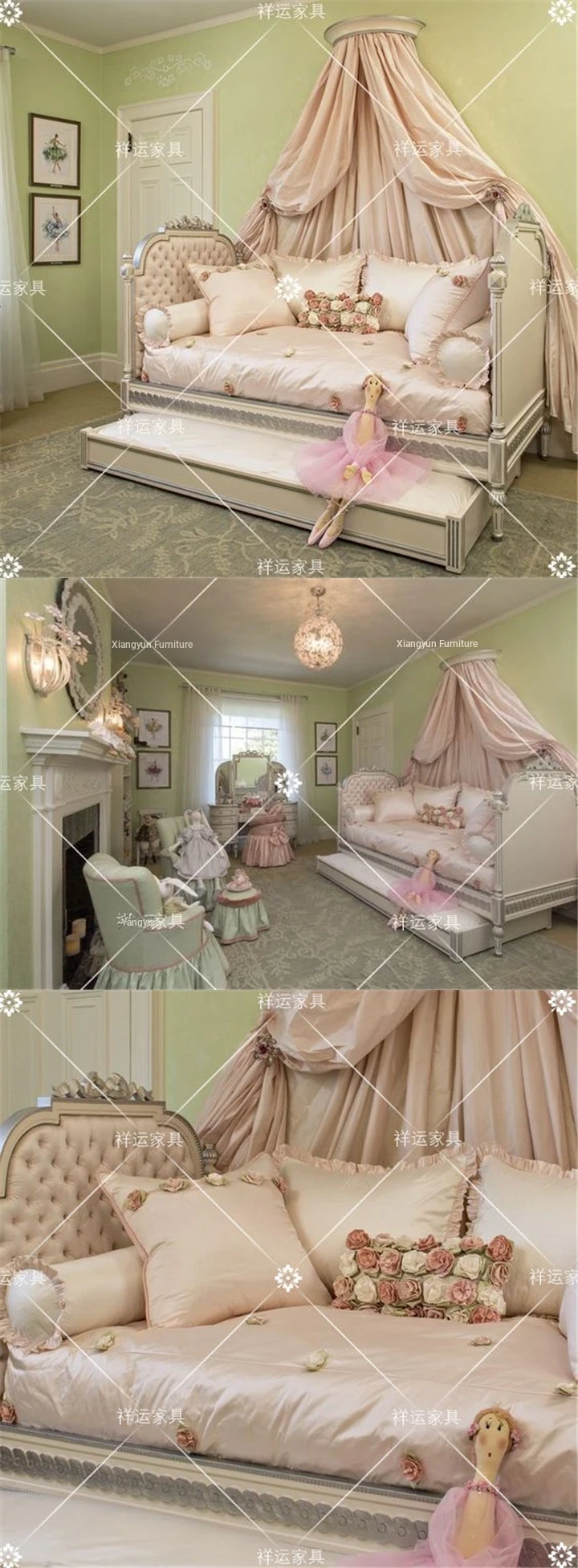 European Style Carved Solid Wood Sofa Bed - Versatile Pull-Out Design for High and Low Configurations, Ideal for American Bedrooms, Kids' Rooms, and Single Sleepers - Perfect Bunk Bed for Parent-Child Sharing!