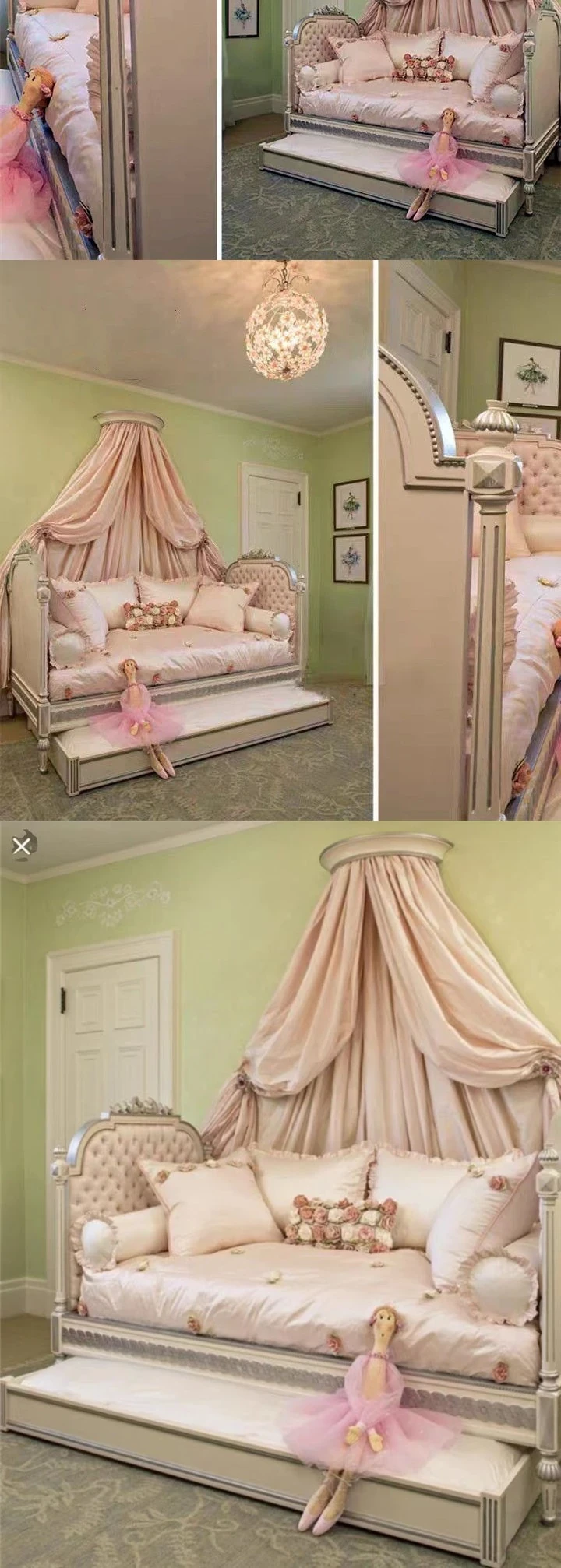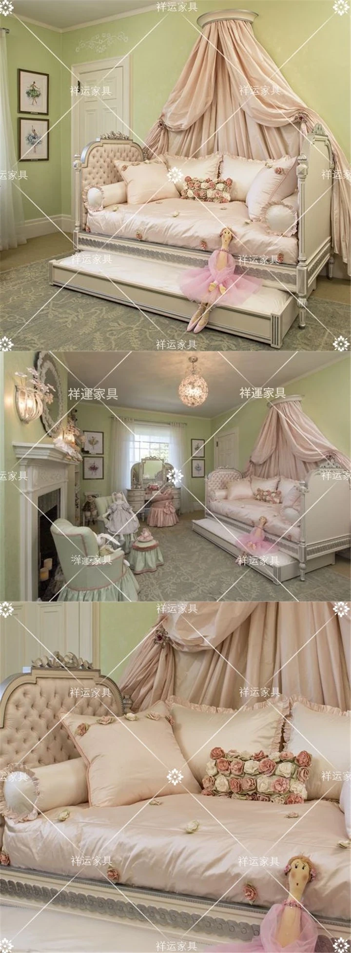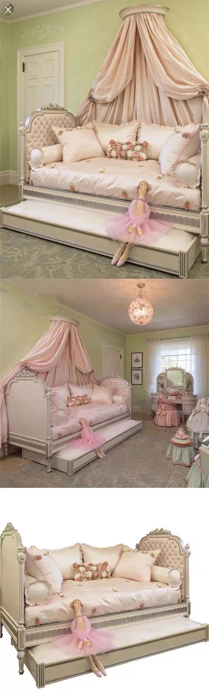 欧風アート彫刻付きソリッドウッドソファベッド|プッシュ&プルで簡単調整!アメリカンスタイルの子供部屋にぴったりなシングル上下二段ベッド|快適さとデザインを両立したママと子供のための理想の眠り空間!
