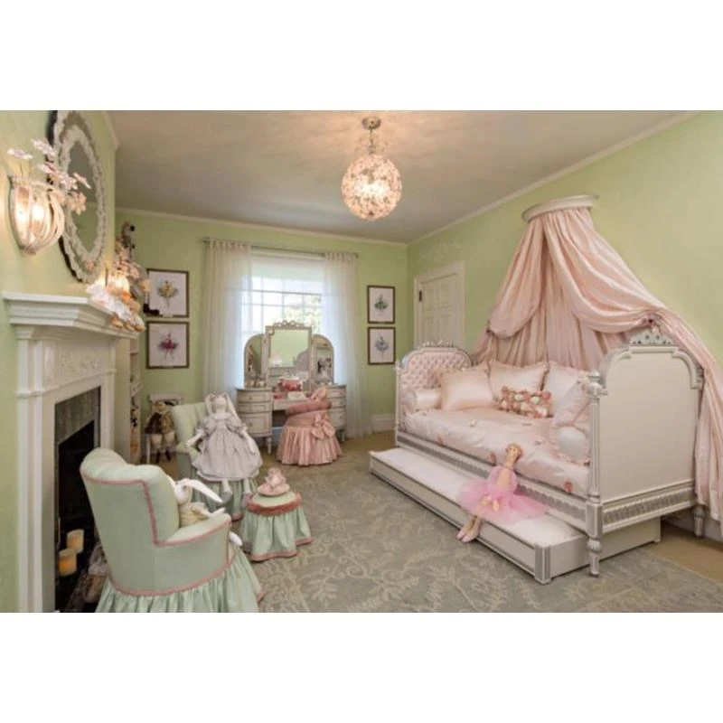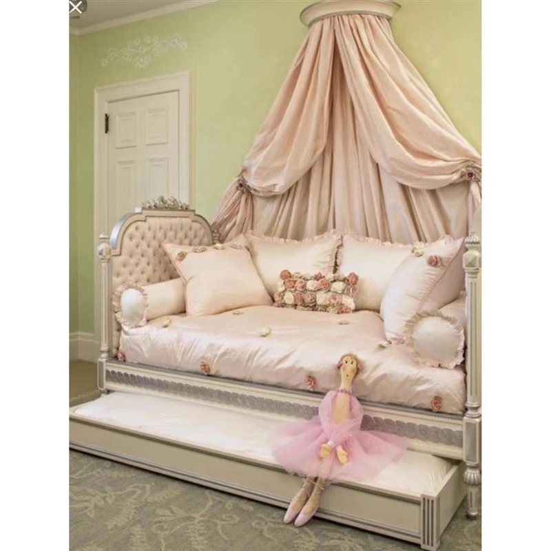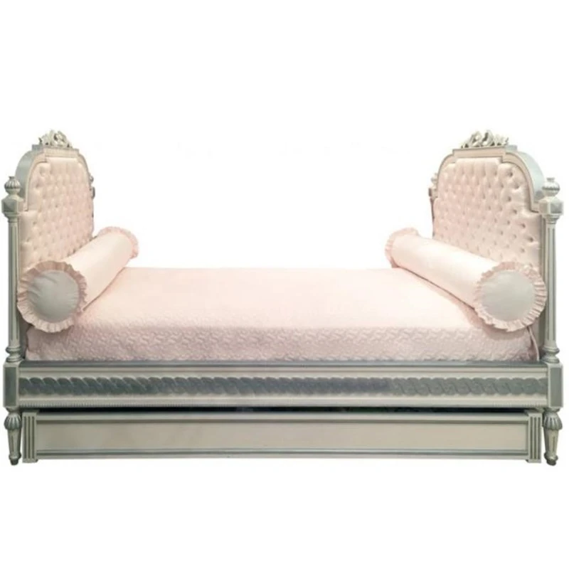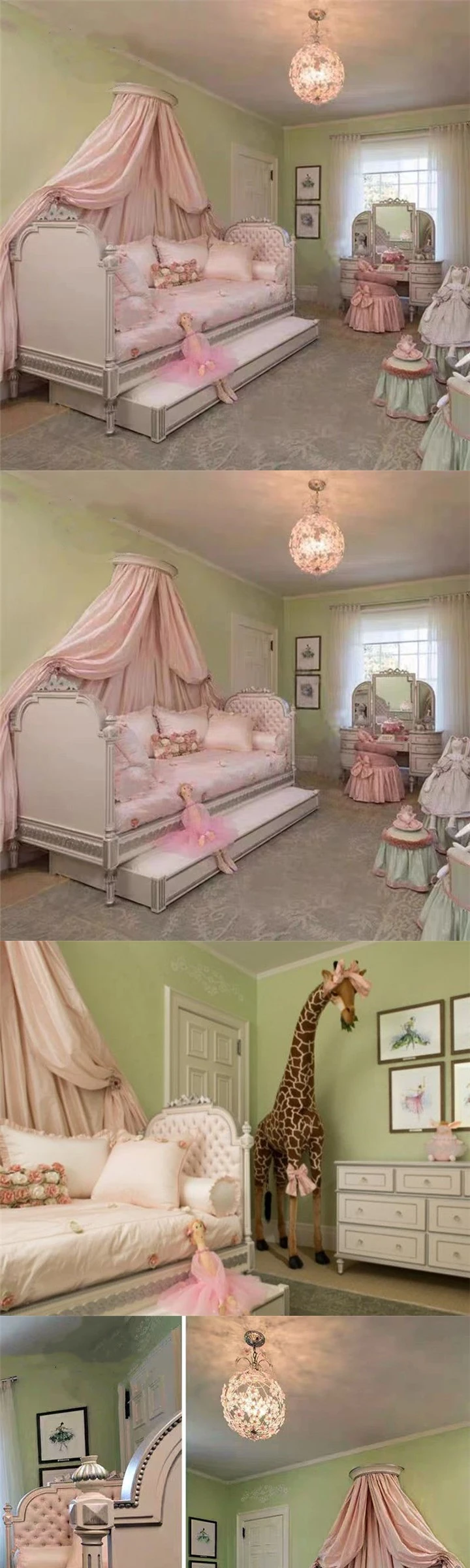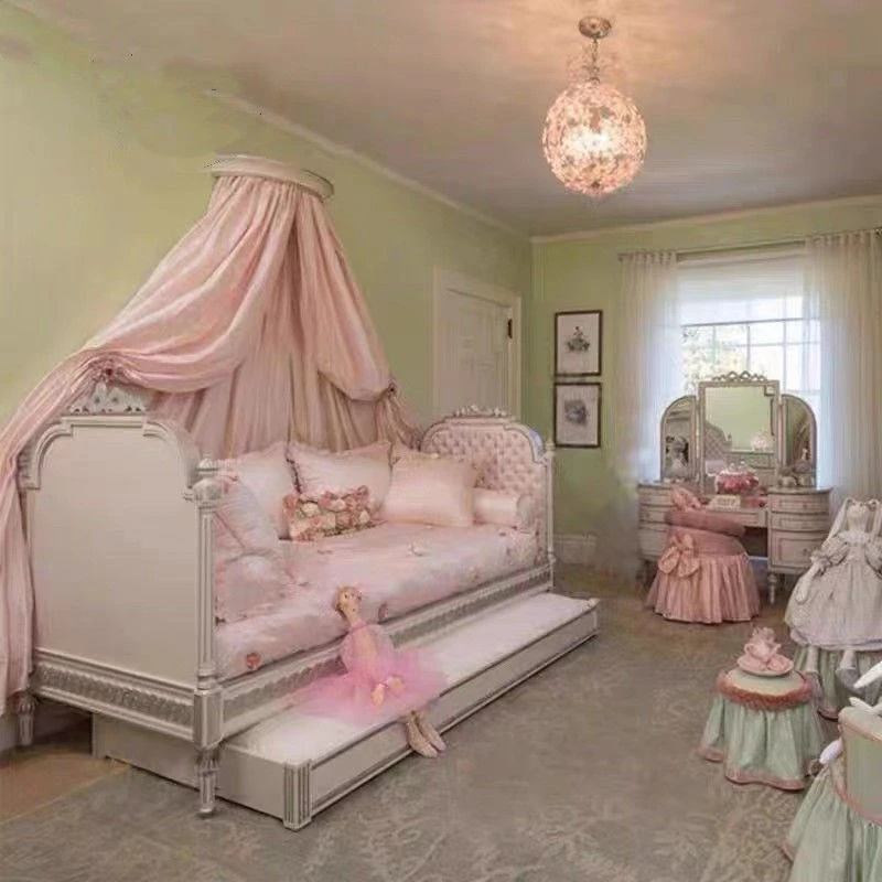 欧風アート彫刻付きソリッドウッドソファベッド|プッシュ&プルで簡単調整!アメリカンスタイルの子供部屋にぴったりなシングル上下二段ベッド|快適さとデザインを両立したママと子供のための理想の眠り空間!