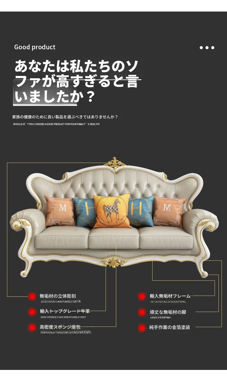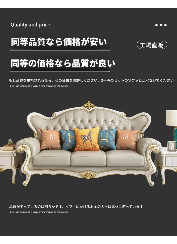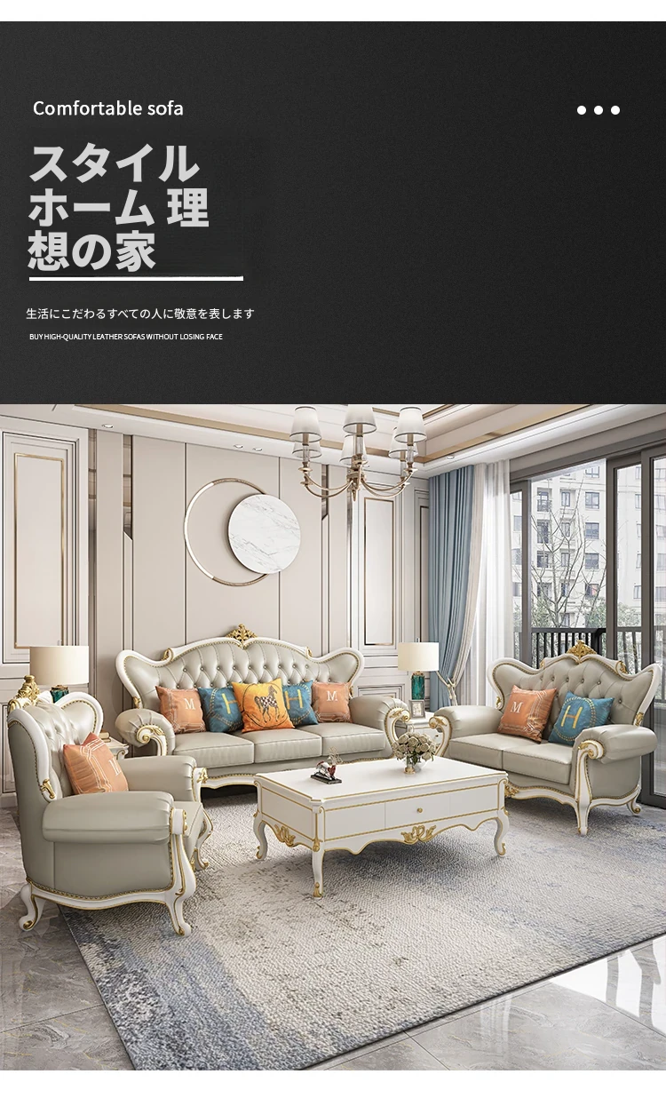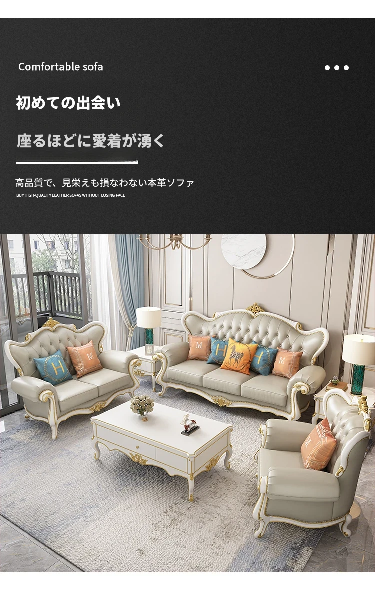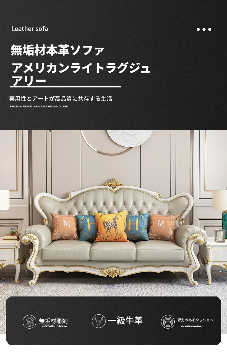 欧風本革ソファ 123人掛けコンビネーション 宮廷スタイルのリビングルーム向け 小型住宅に最適 アメリカンヴィラ風のラグジュアリー家具で、おしゃれな空間を演出!