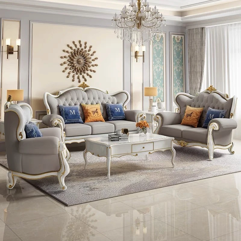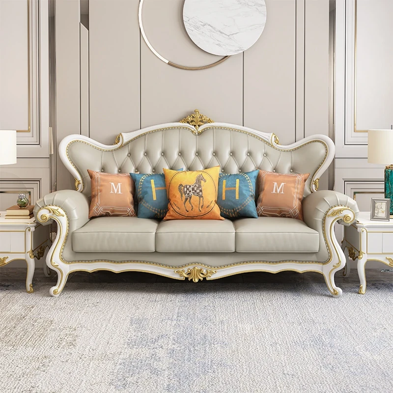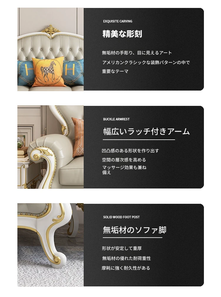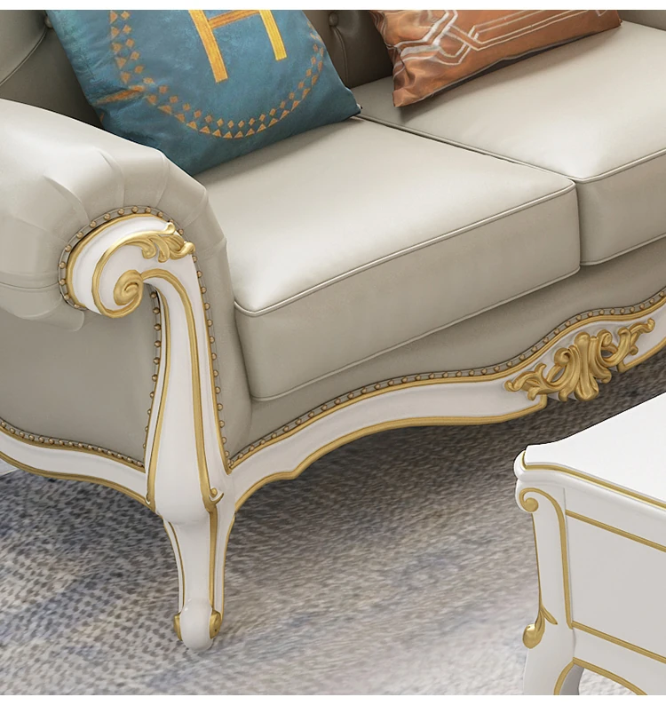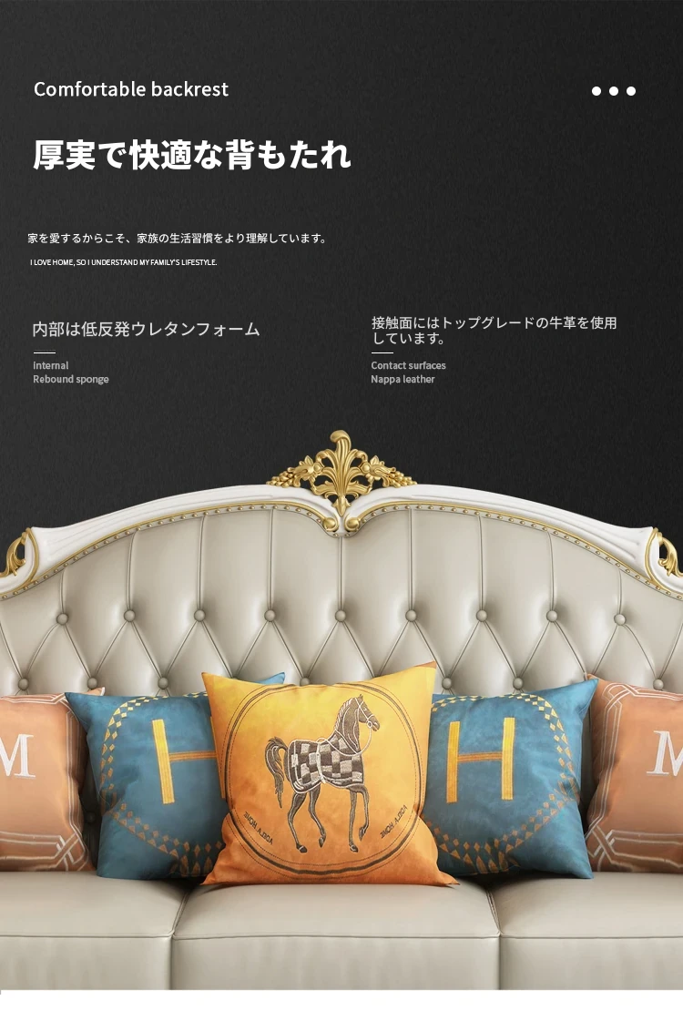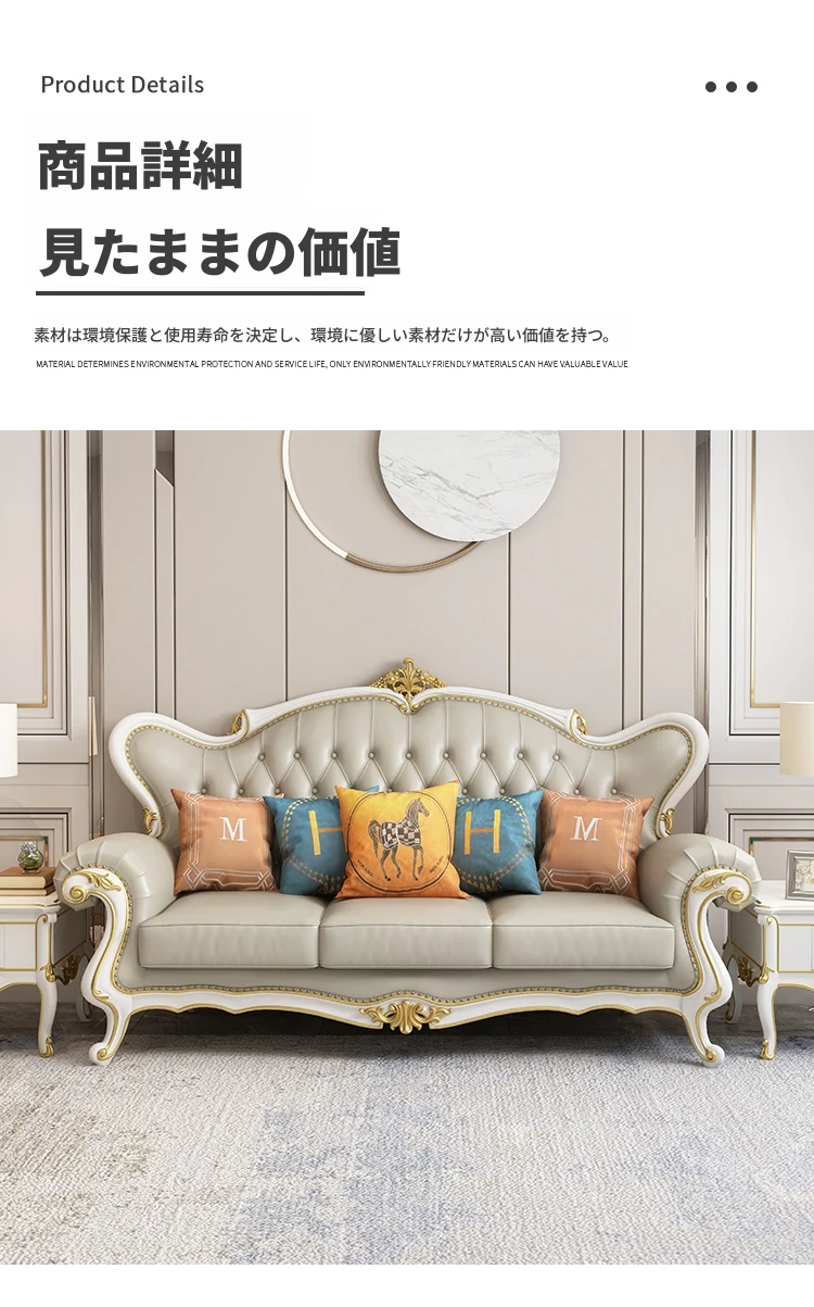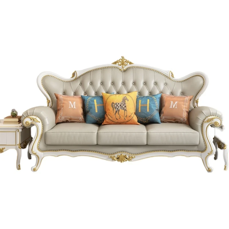 欧風本革ソファ 123人掛けコンビネーション 宮廷スタイルのリビングルーム向け 小型住宅に最適 アメリカンヴィラ風のラグジュアリー家具で、おしゃれな空間を演出!