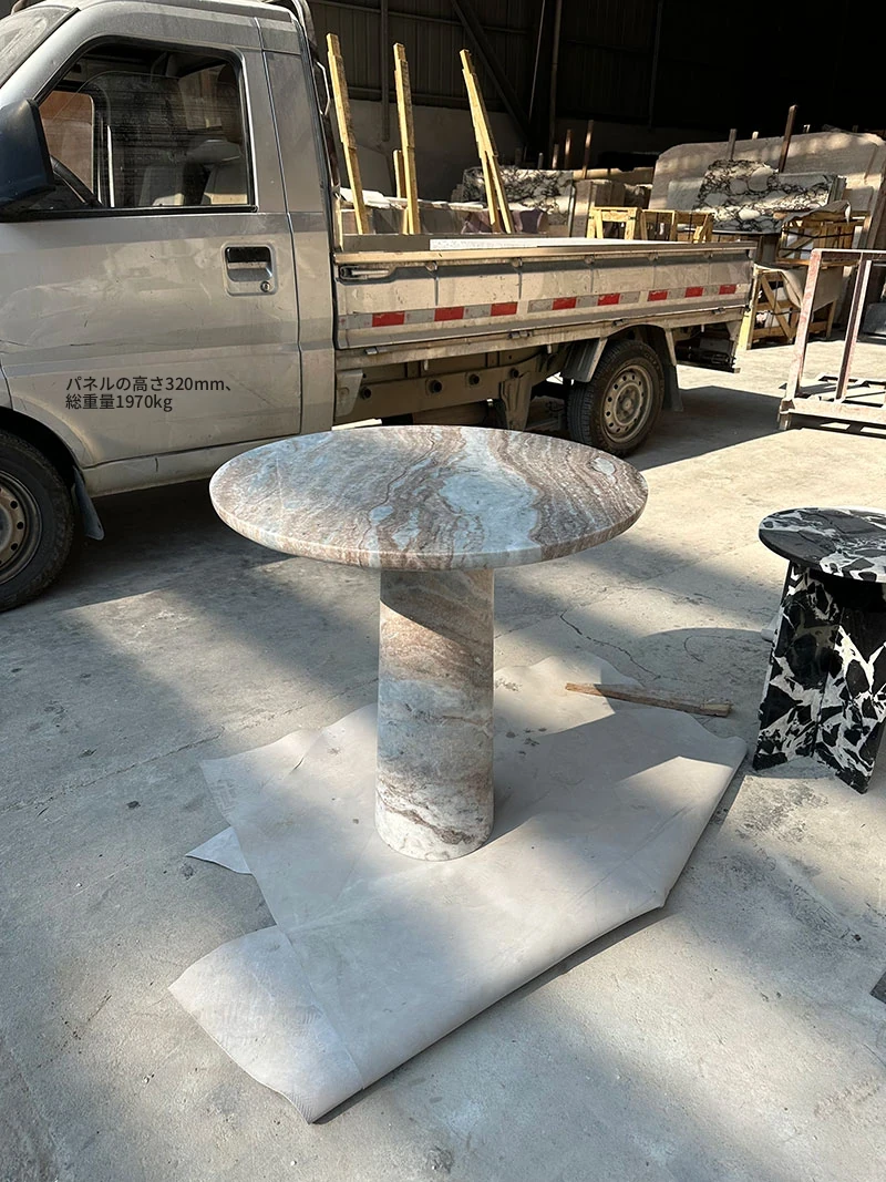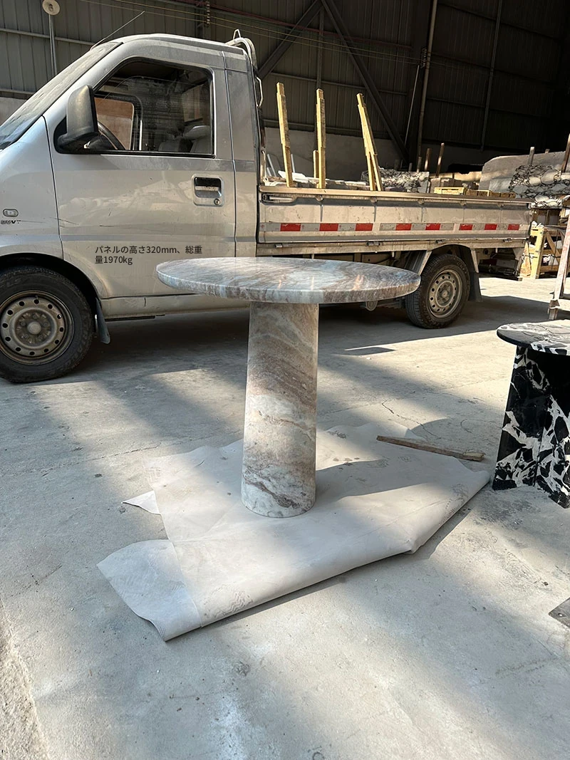 欧風ライトラグジュアリー大理石ダイニングテーブル|小型住宅や民宿に最適なクリエイティブデザインの丸テーブル|おしゃれなサイドテーブルとしても活躍!