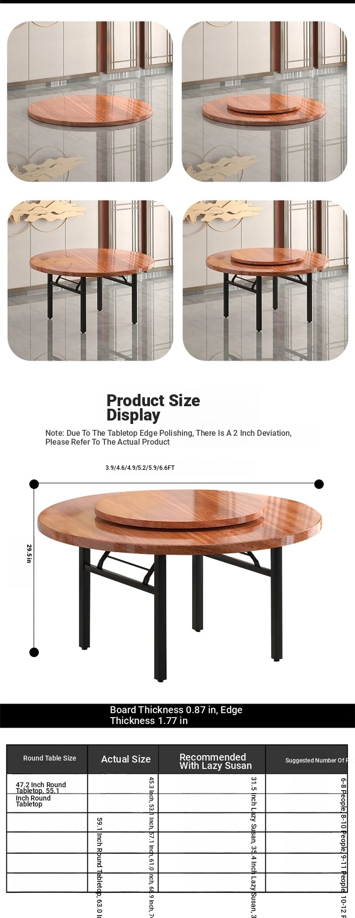 Extra Thick Solid Wood Round Dining Table with Lazy Susan - Ideal for 10-15 People in Homes, Hotels, and Restaurants - Perfect for Family Gatherings and Special Occasions