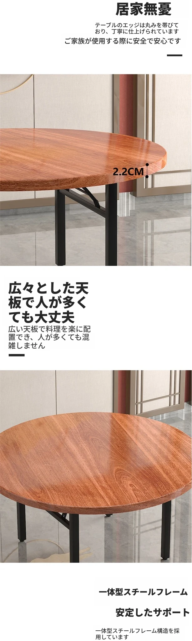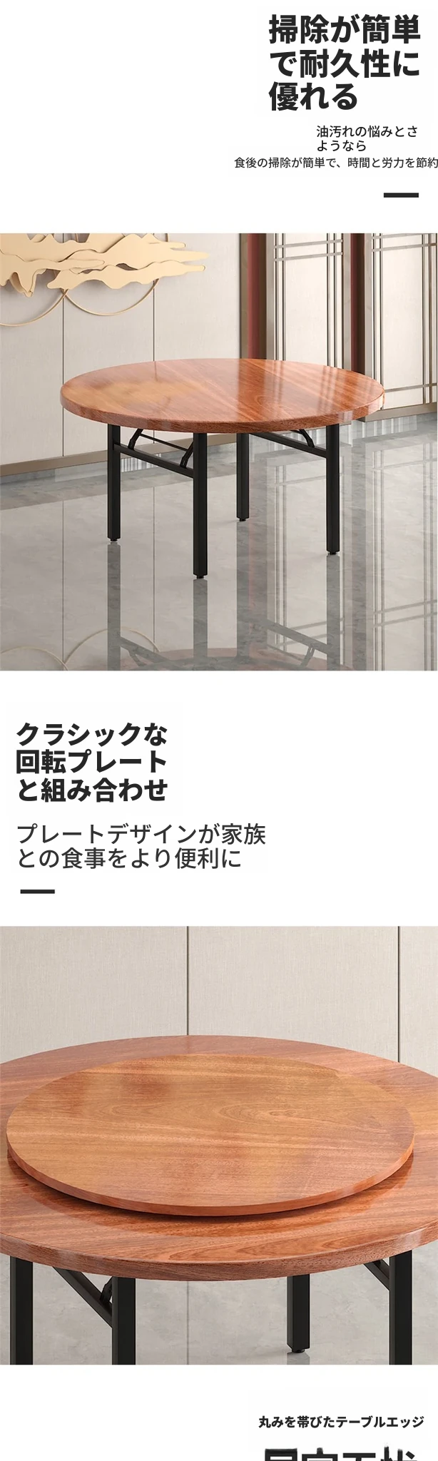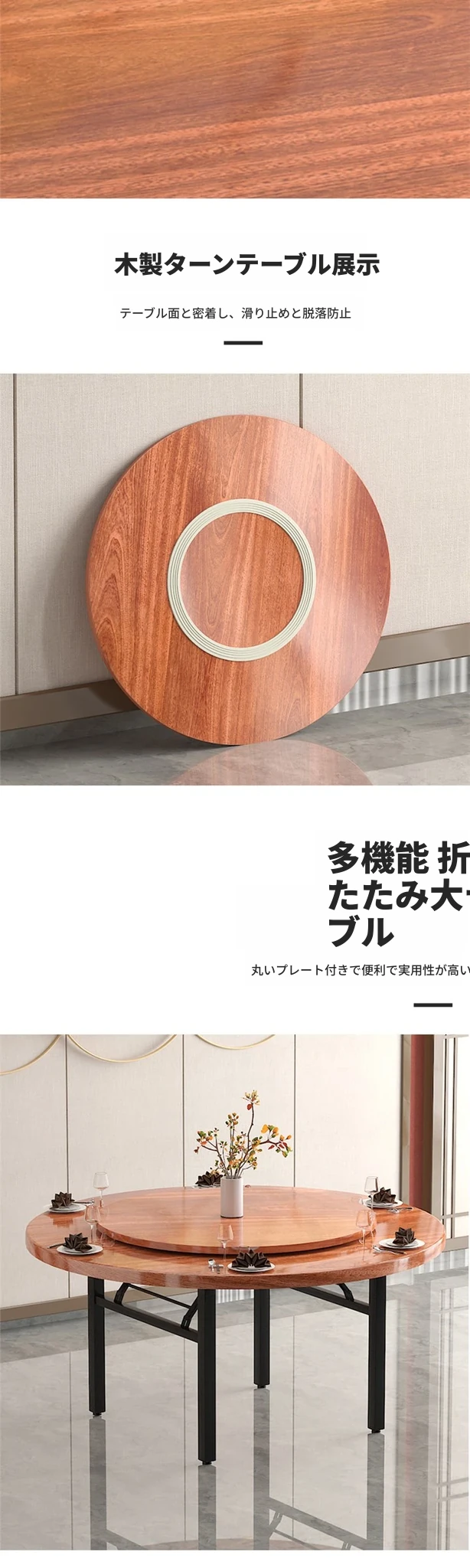 厚みのある無垢材製の大きな円卓 - 回転式で便利!10人から15人まで対応可能な円形ダイニングテーブル。ホテルやレストランに最適な高級感あふれるデザイン。おもてなしを引き立てる一品です!