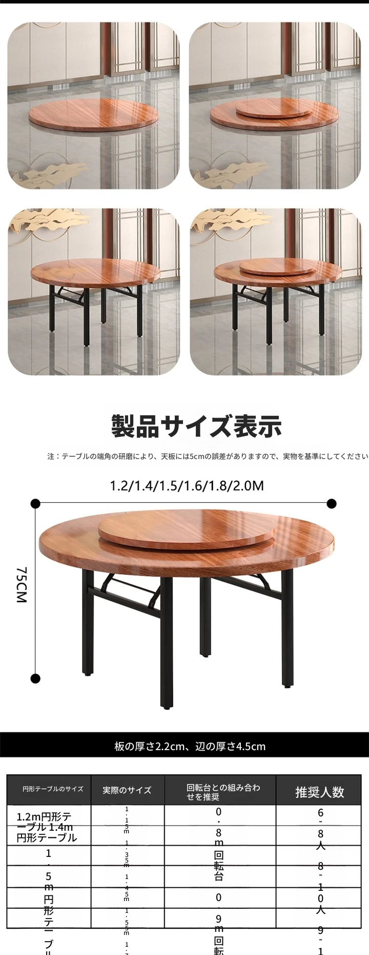 1.8メートル桃花芯の円形テーブルトップ+1.2メートル木製回転台