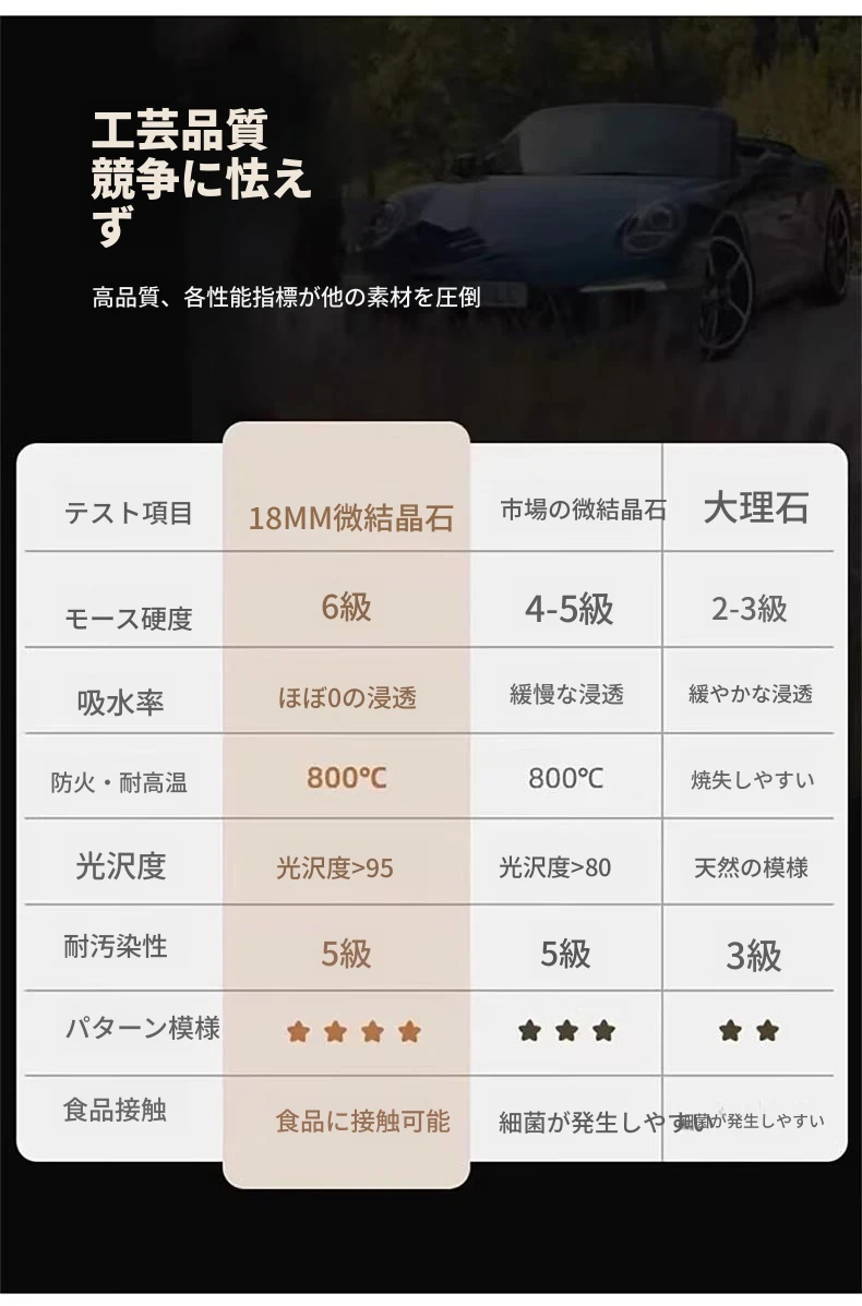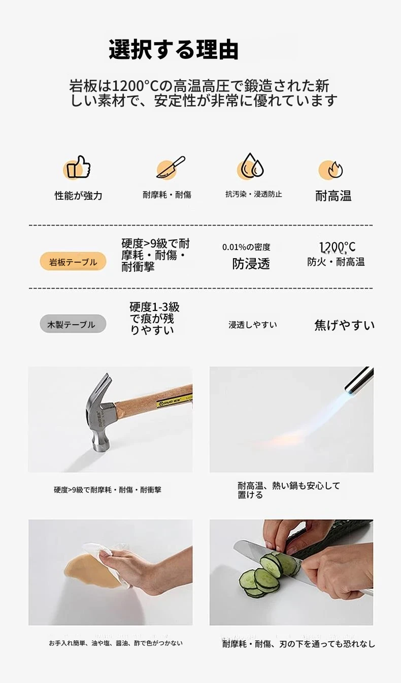 【180*90*75CM】超晶石18mm厚のダイニングテーブル