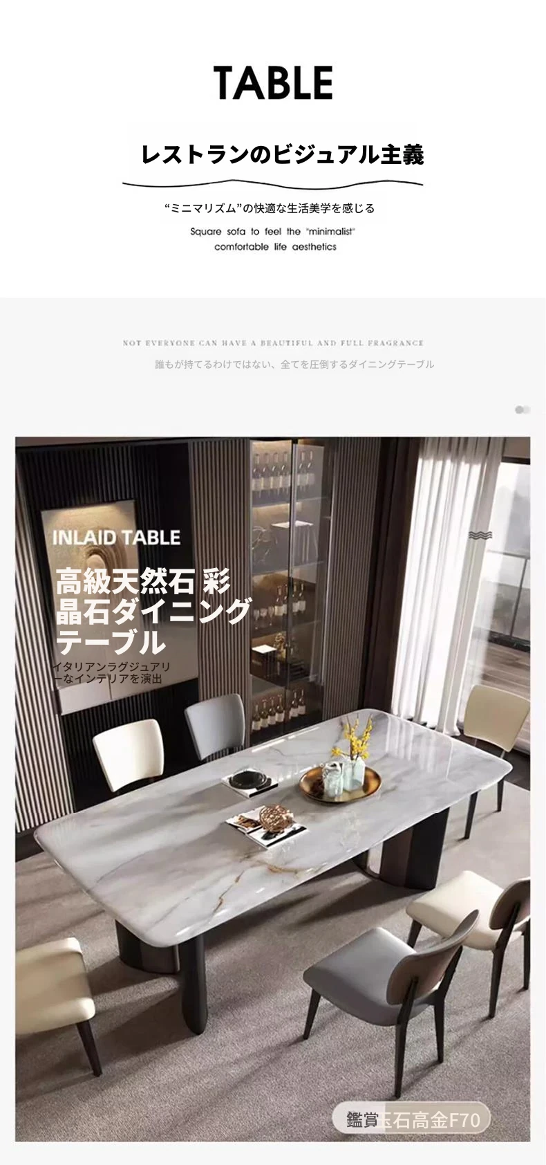 【香港送料無料】厳選ピエトラ イタリアン天然大理石ダイニングテーブル&チェアセット 小型住宅向け 超美彩クリスタル仕上げ