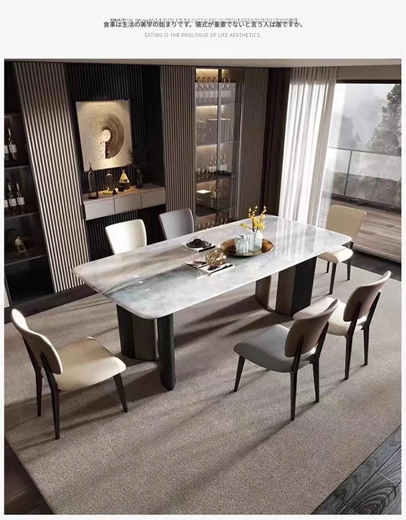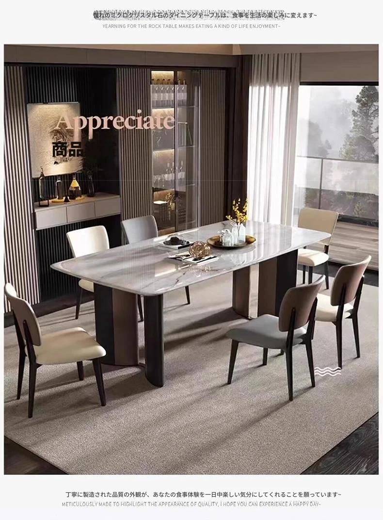 【180*90*75CM】岩板12mm厚のダイニングテーブル+ダイニングチェア*6