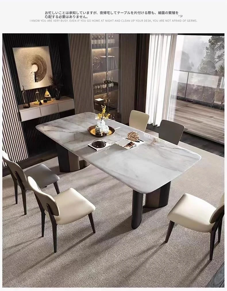 【180*90*75CM】超晶石18mm厚のダイニングテーブル+ダイニングチェア*6