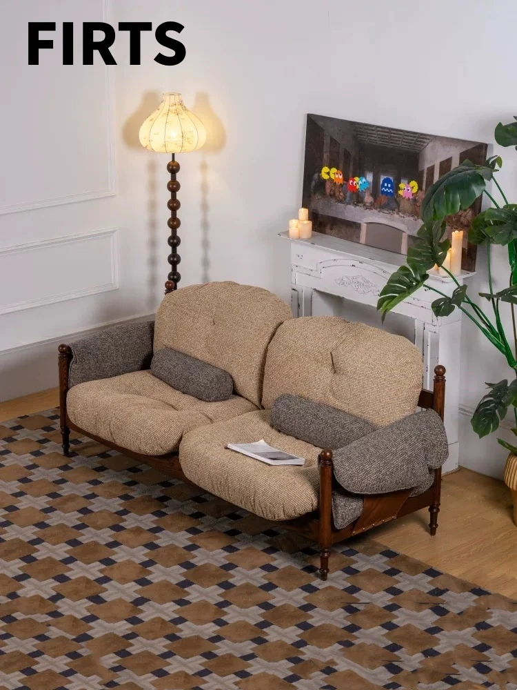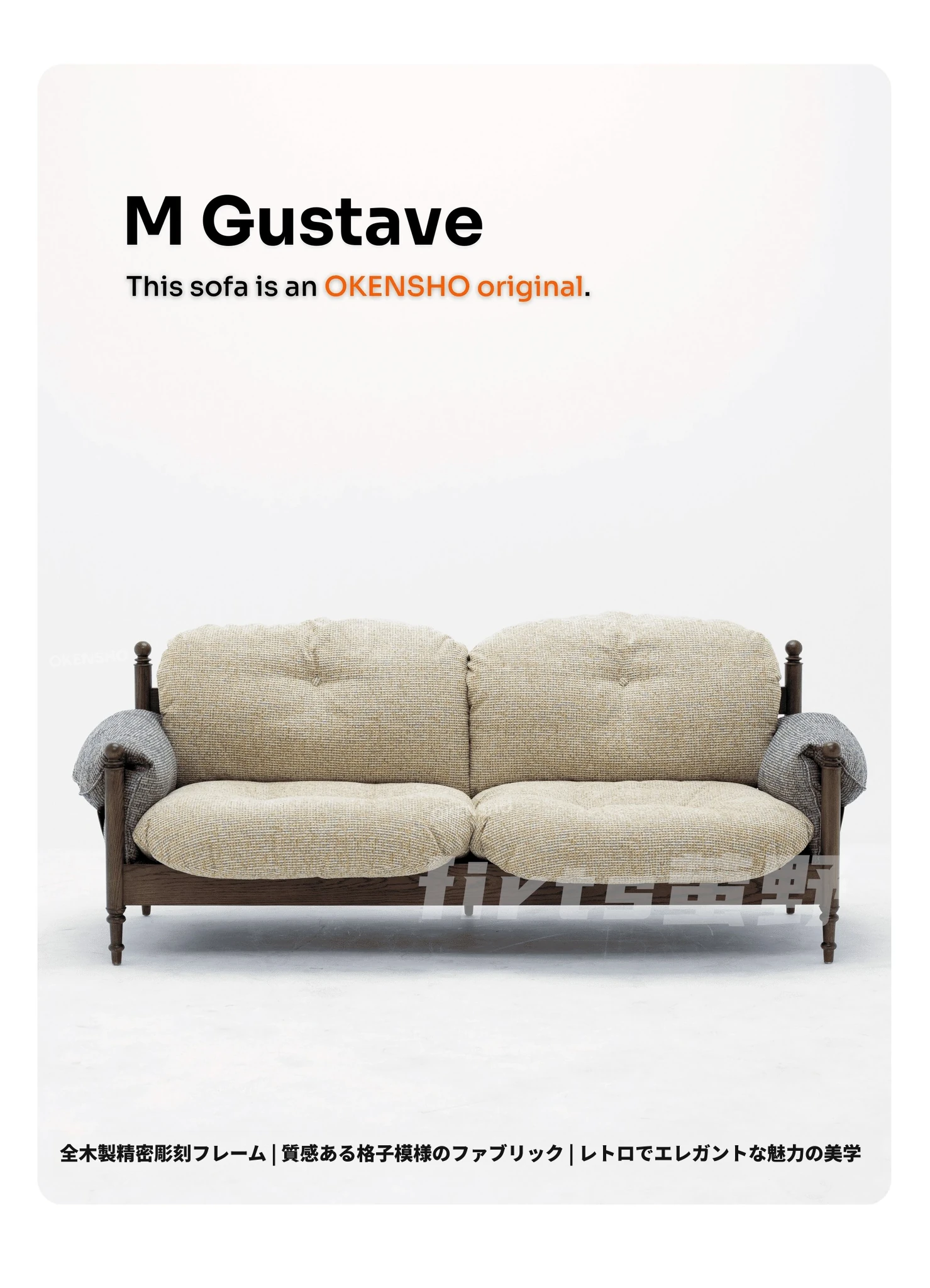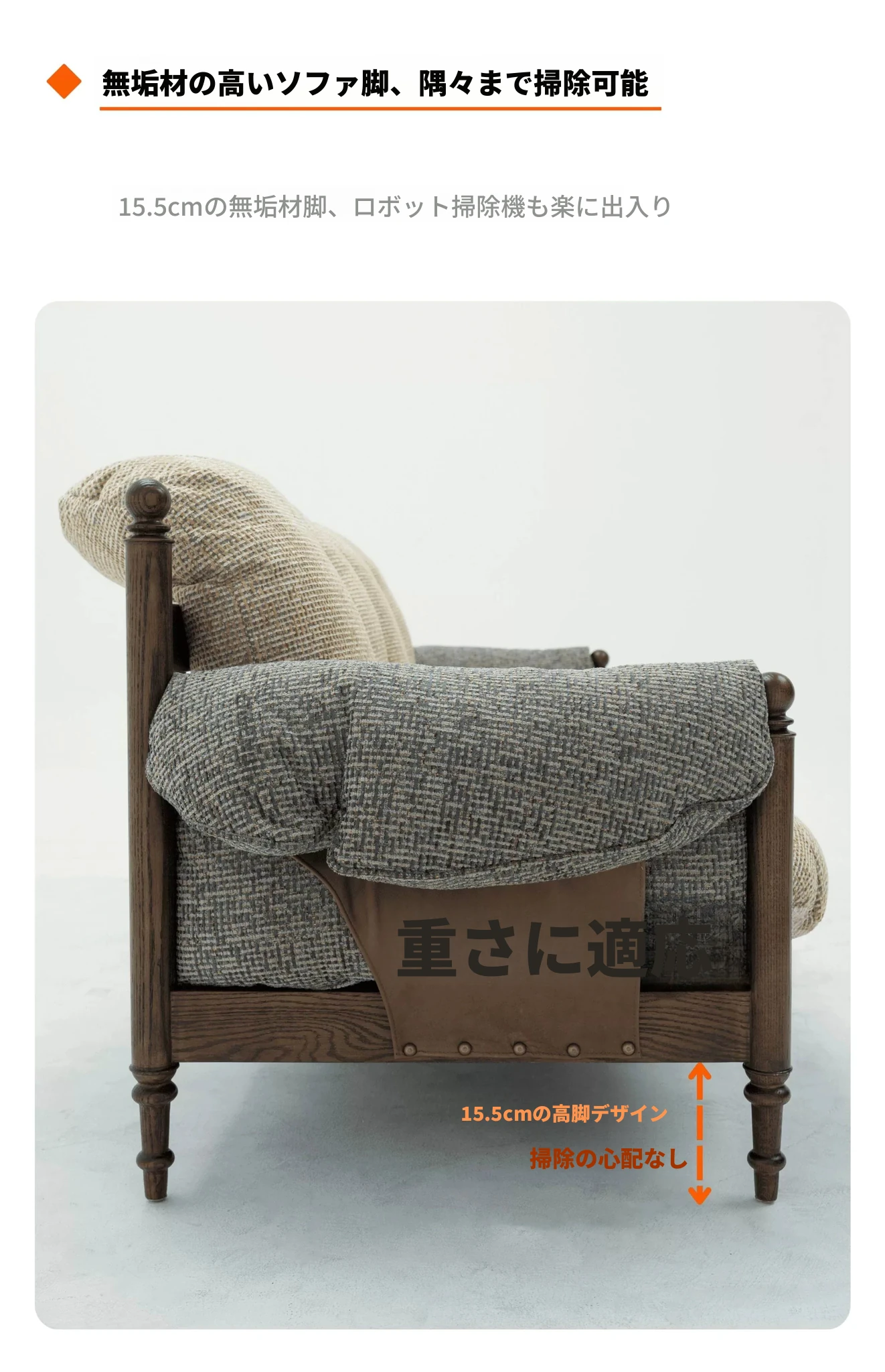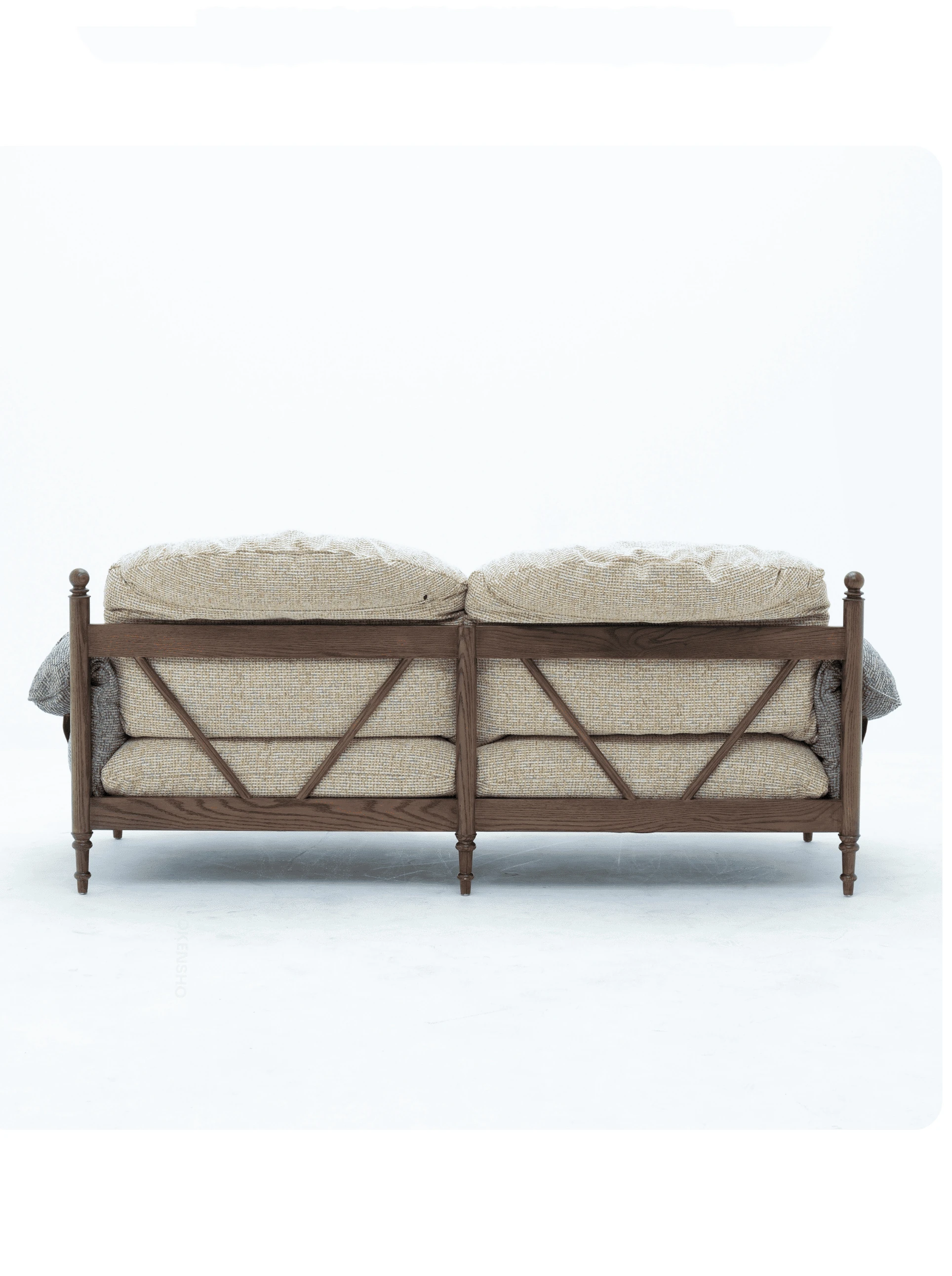 フレンチヴィンテージスタイルのアンティーク風ダブルサイズ無垢材布製ソファ|小スペースにぴったり!新中式を取り入れたグスタソファの復刻版で、心地よい空間を演出します。