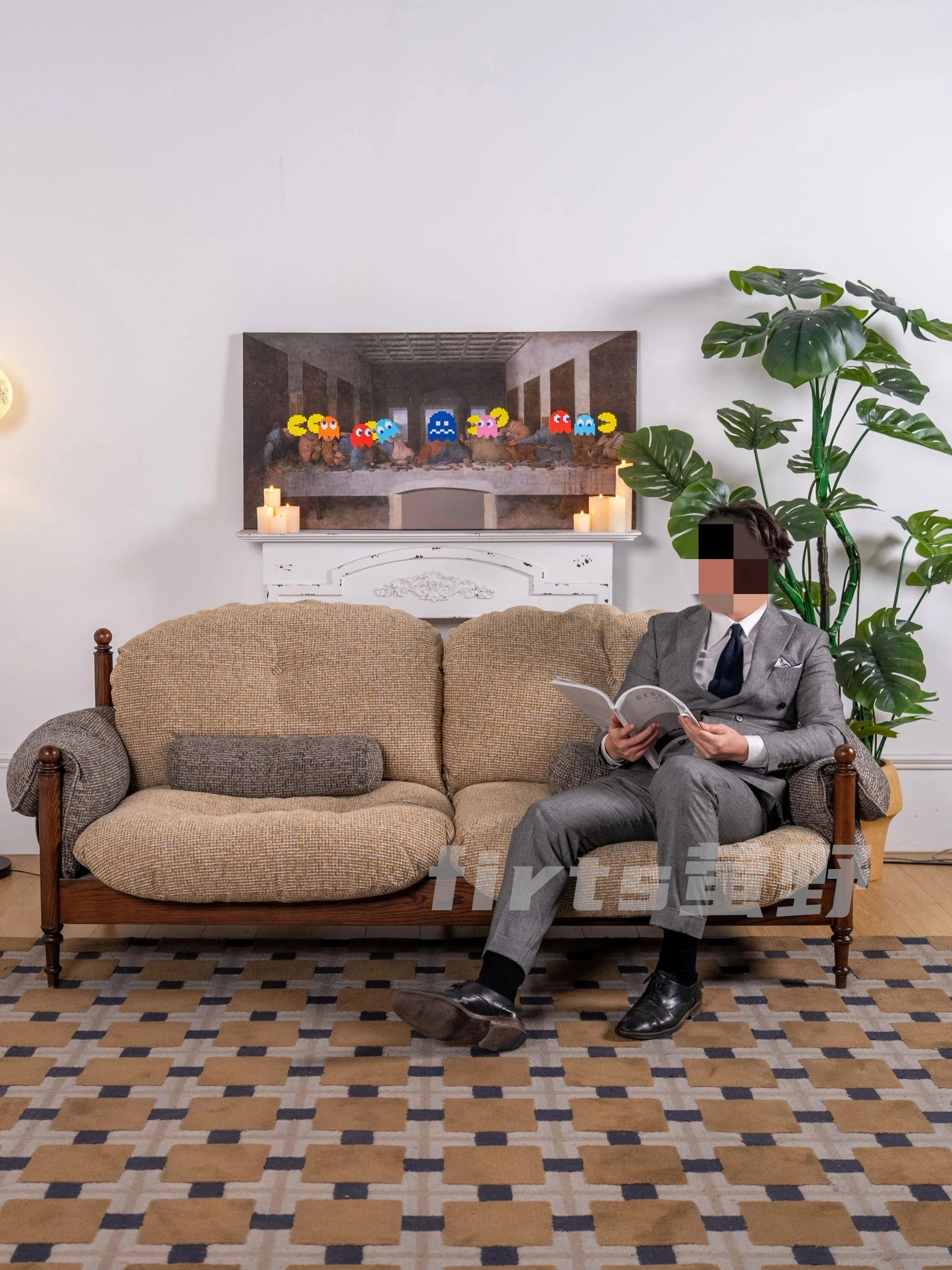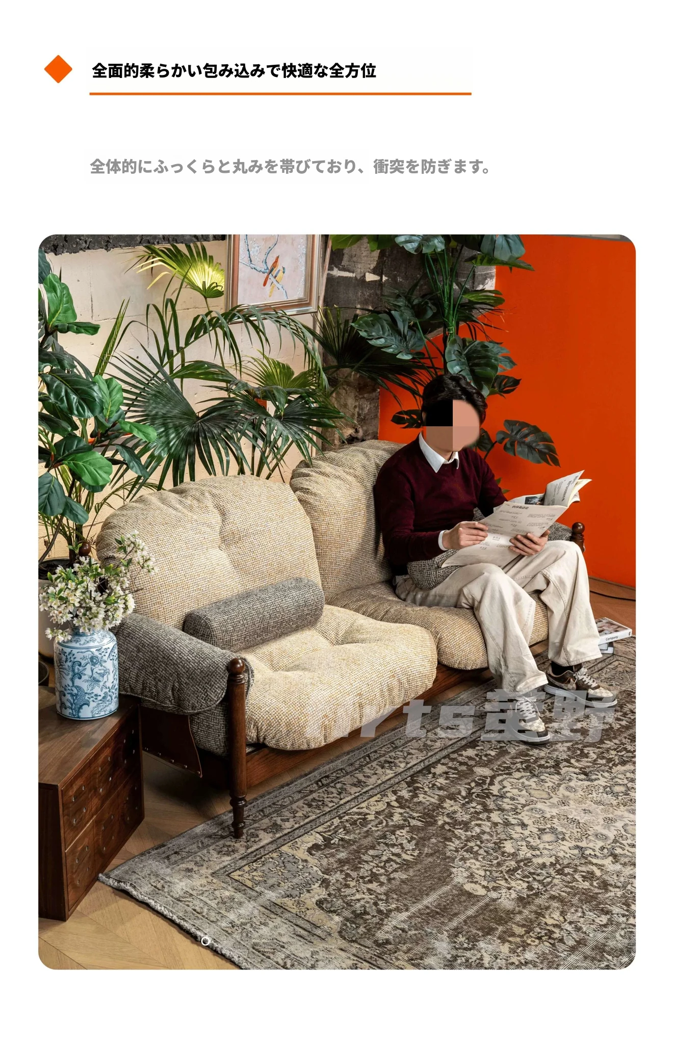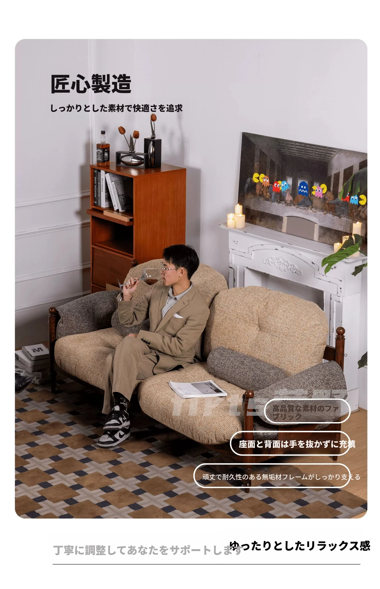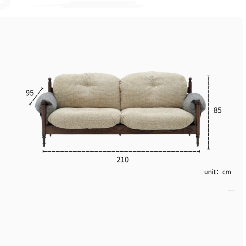 フレンチヴィンテージスタイルのアンティーク風ダブルサイズ無垢材布製ソファ|小スペースにぴったり!新中式を取り入れたグスタソファの復刻版で、心地よい空間を演出します。