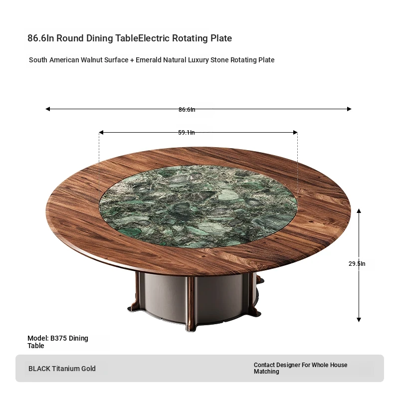 Table 86.61in South American Walnut + Emerald Natural Luxury Stone Turntable