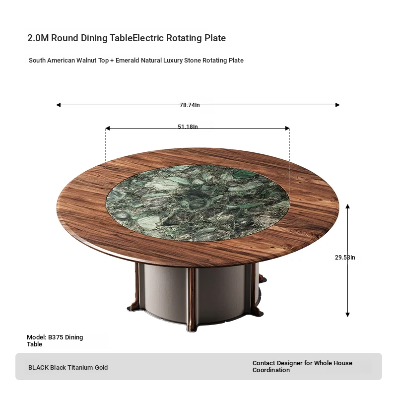 Table 78.74in South American Walnut + Emerald Natural Luxury Stone Turntable