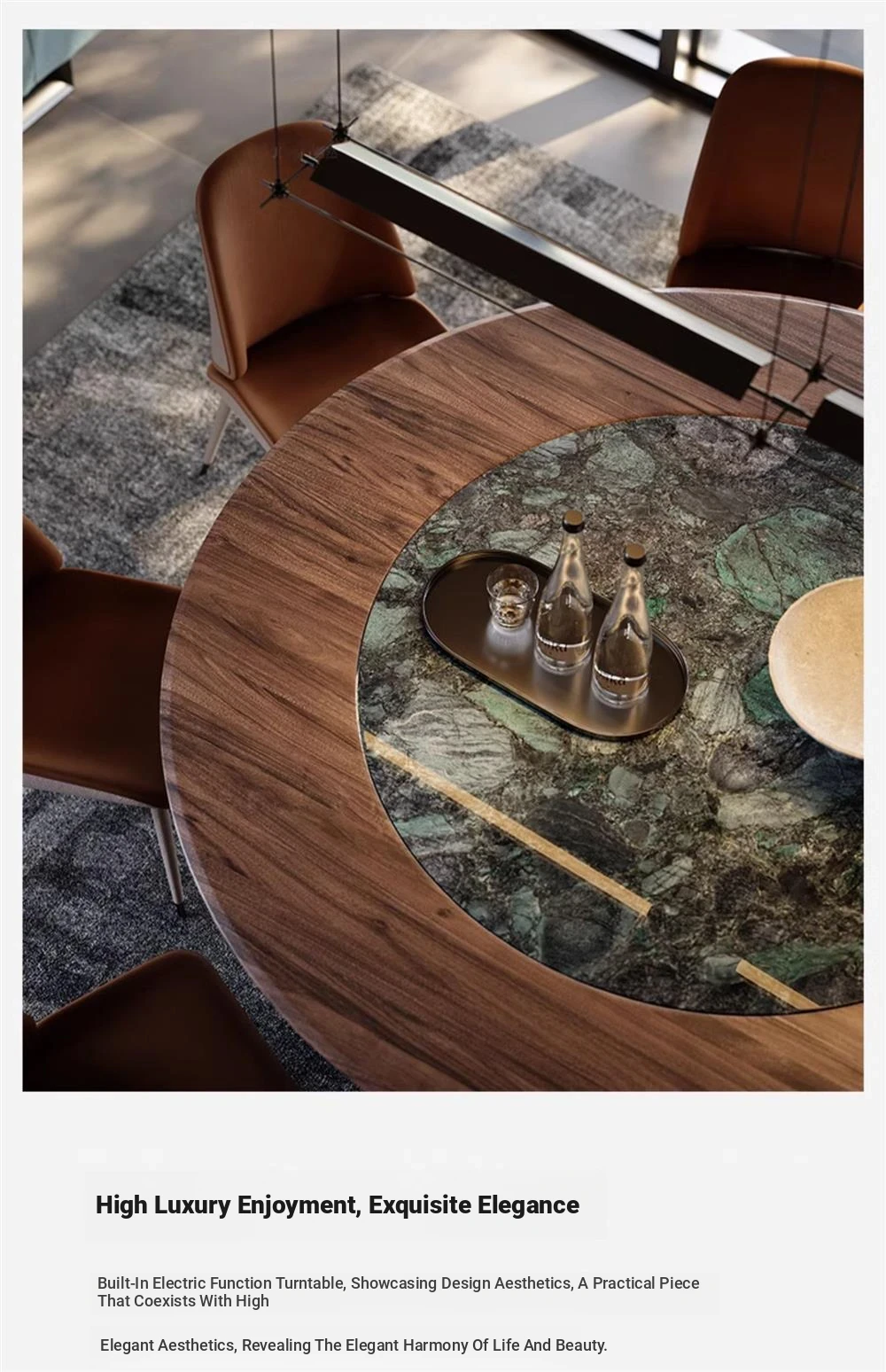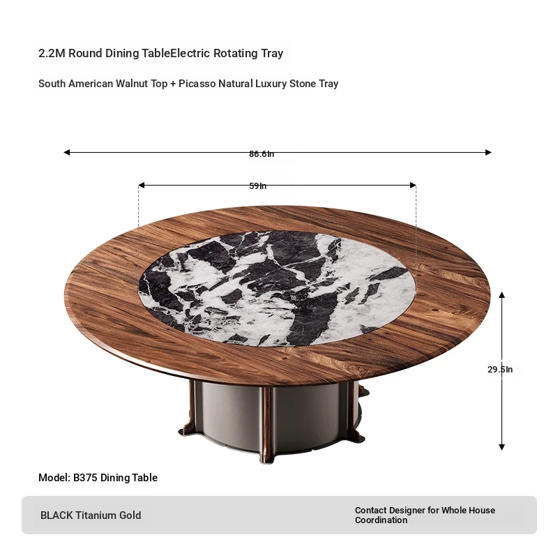 Dining Table 86.61in South American Walnut + Picasso natural luxury stone turntable