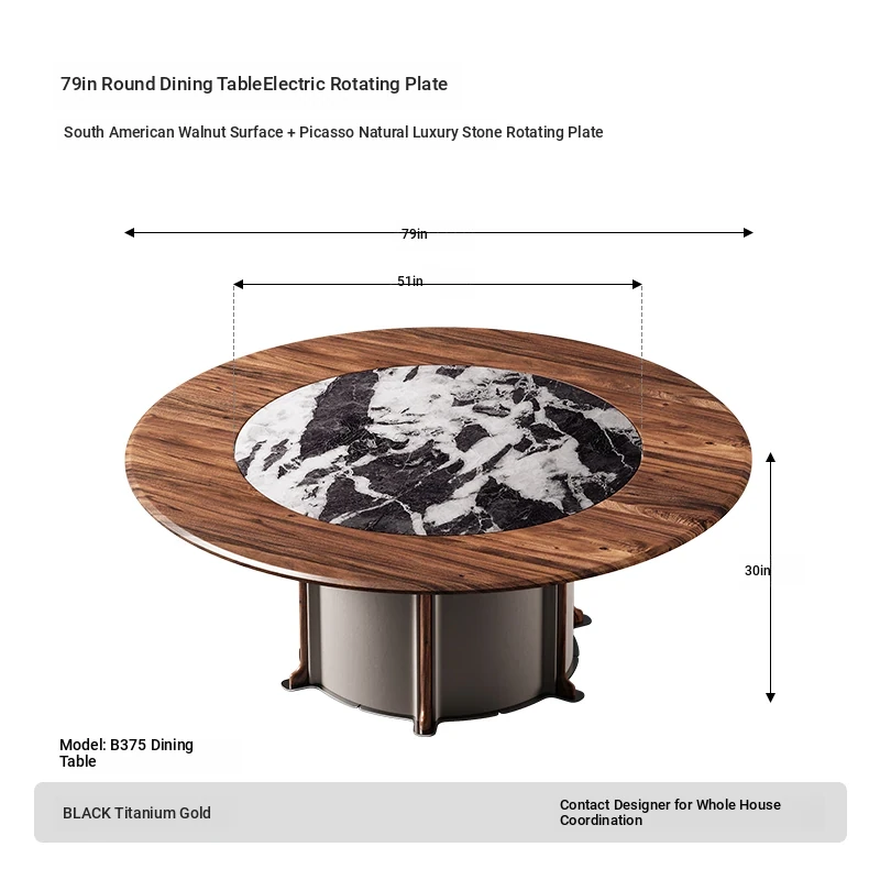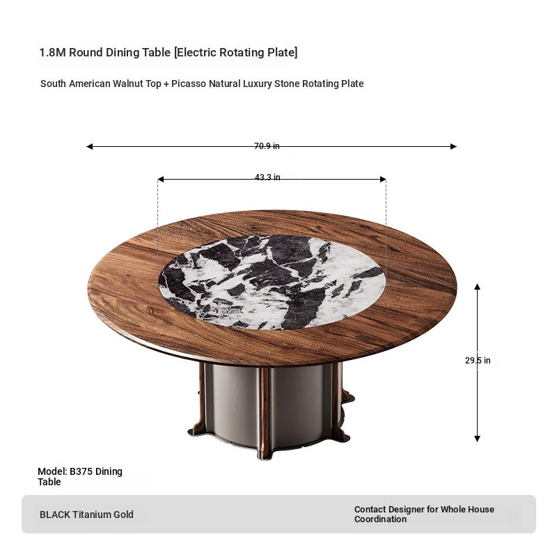 Dining Table 70.87in South American Walnut + Picasso natural luxury stone turntable