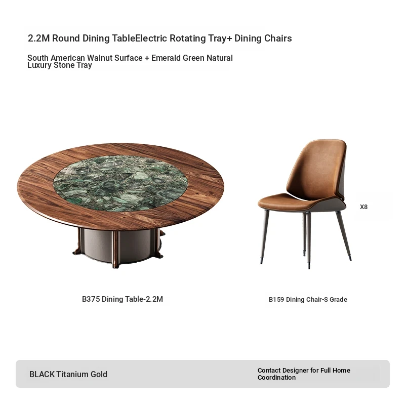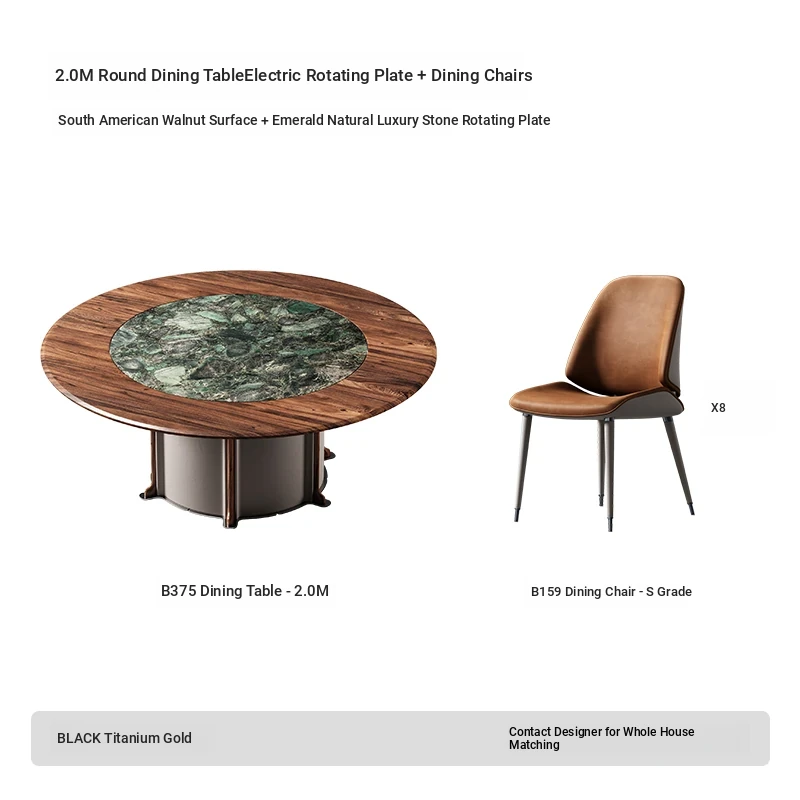 Dining Table 86.61in South American Walnut + Emerald natural luxury stone turntable + B159 full leather dining chair [S]_8