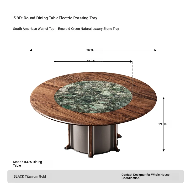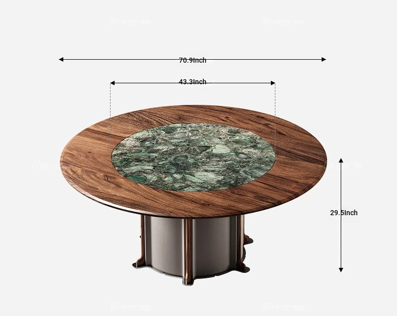 Table 70.87in South American Walnut + Emerald Natural Luxury Stone Turntable