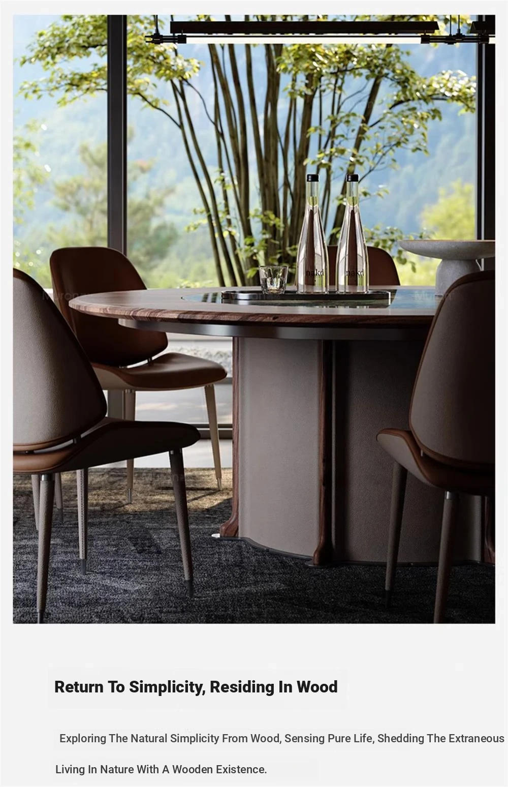 Imported Marble Dining Table - Modern Minimalist Design with Luxurious Natural Stone, Complete Home Matching, Features Embedded Rotating Tray, Solid Wood Round Dining Table.