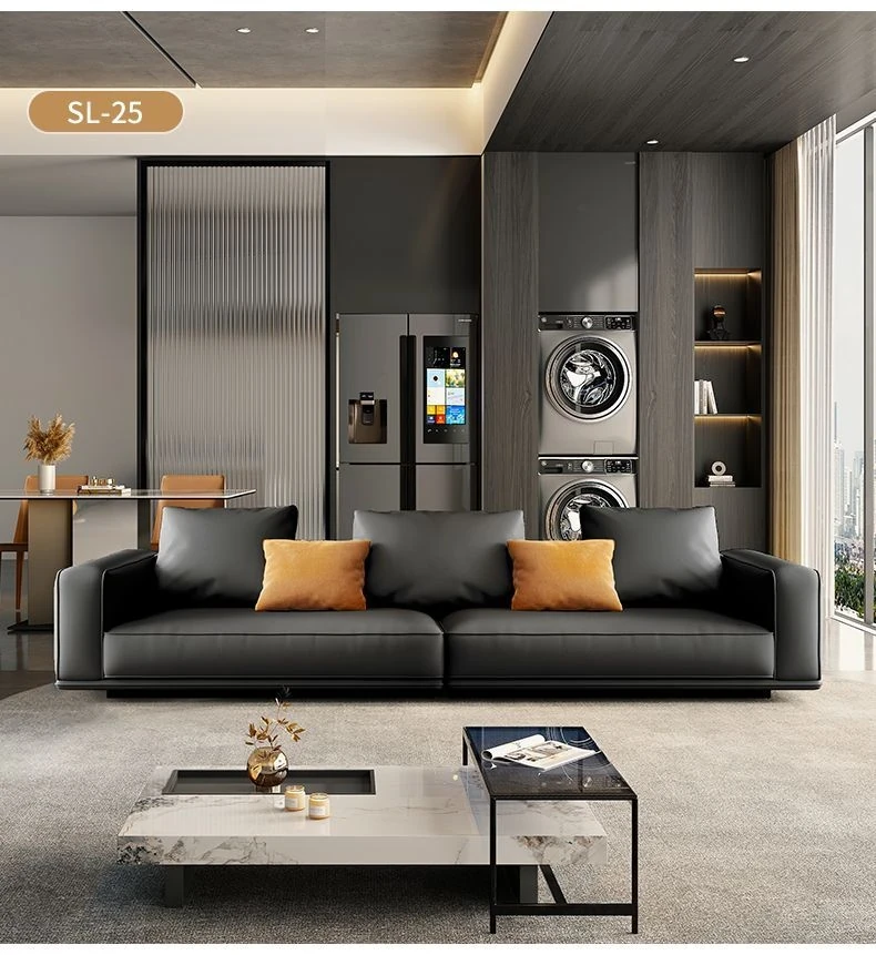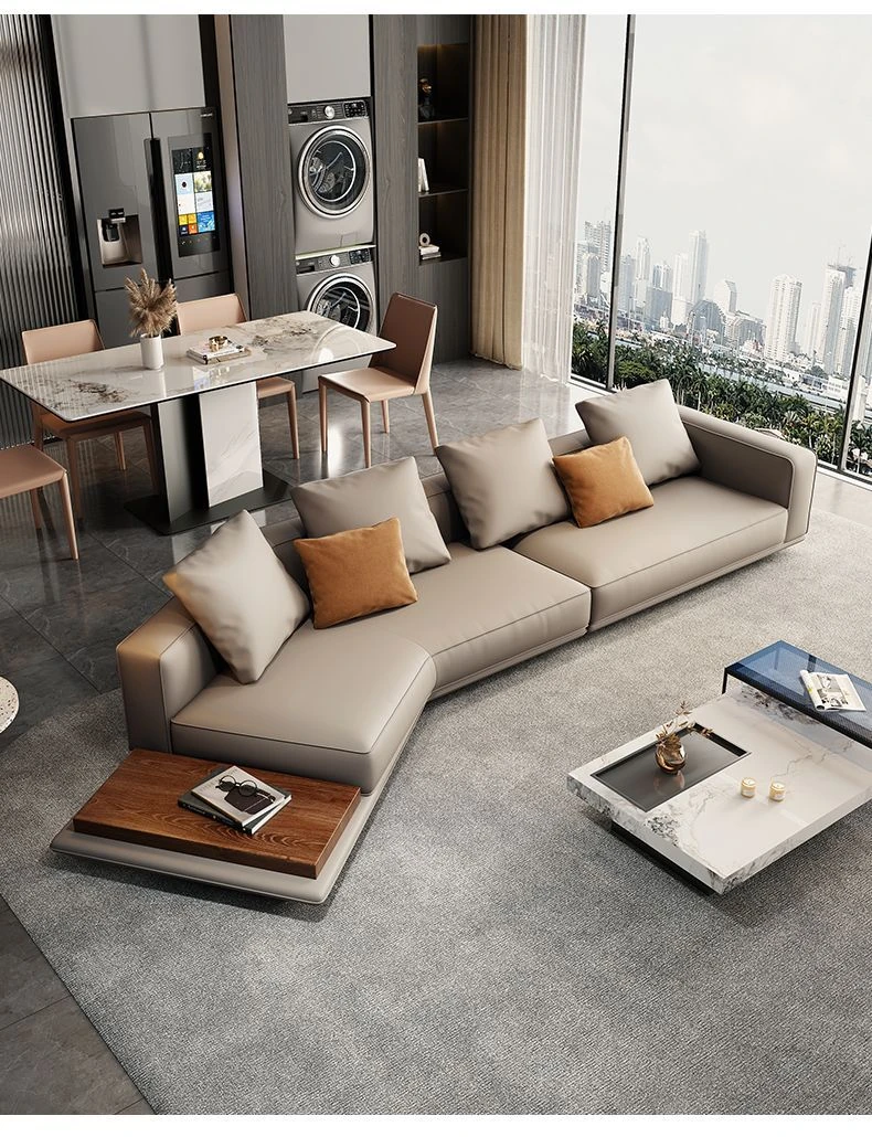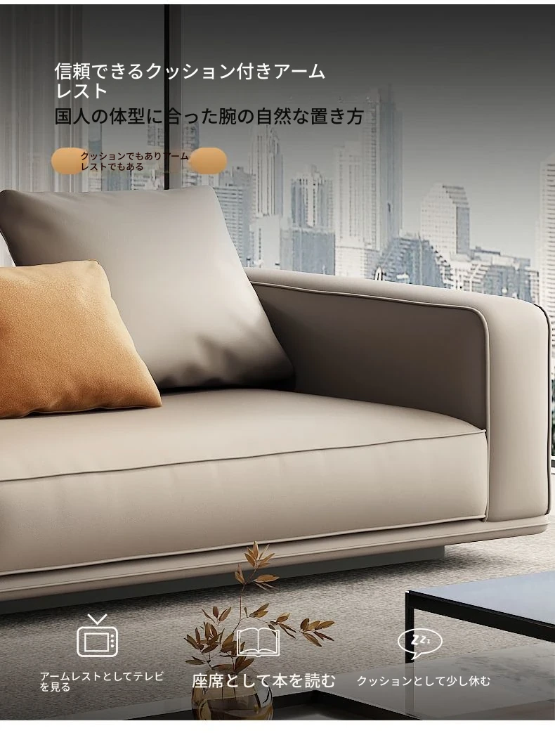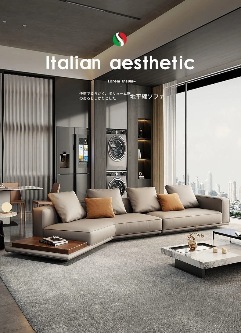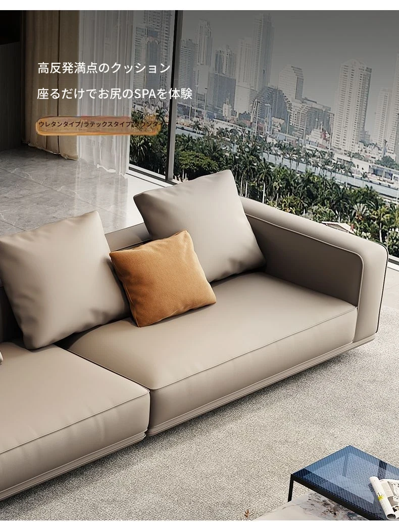 イタリアンスタイルのハイエンド本革ソファ|モダンリビングに最適な大判サイズ|高級牛革使用のユニークなデザイン|広々とした空間にぴったりな豆腐ブロックソファ