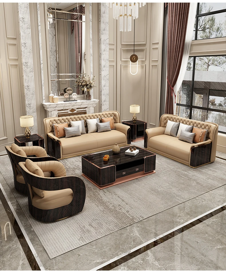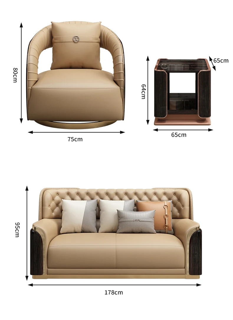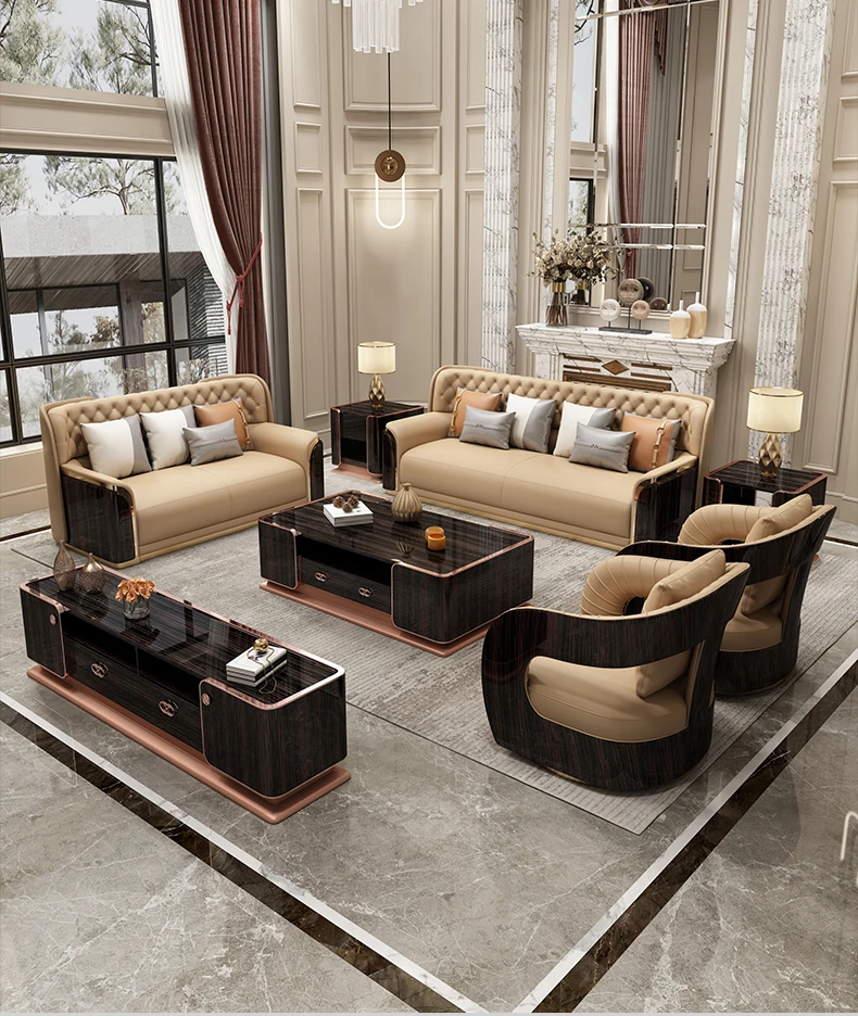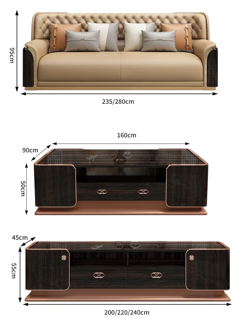 2つのリラックソファ+2人掛け+3人掛け+コーヒーテーブル+2.2メートルテレビボード+2つのサイドテーブル(イタリア輸入の本革)