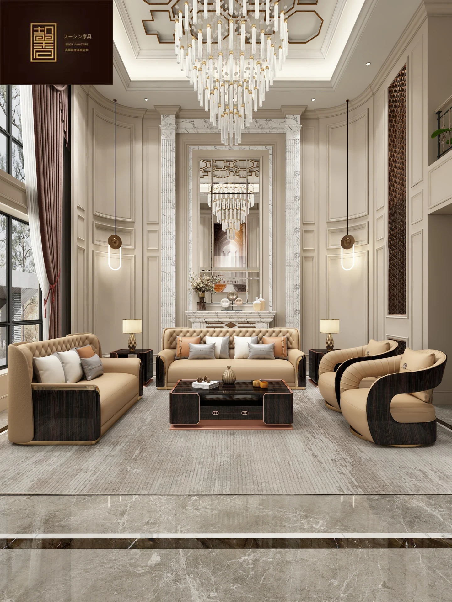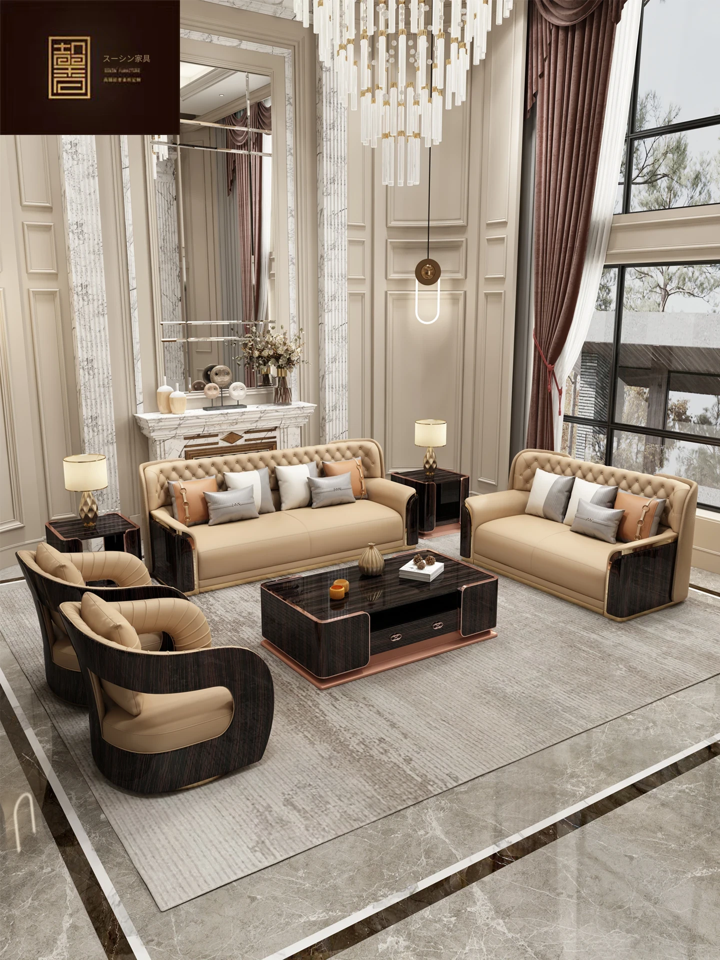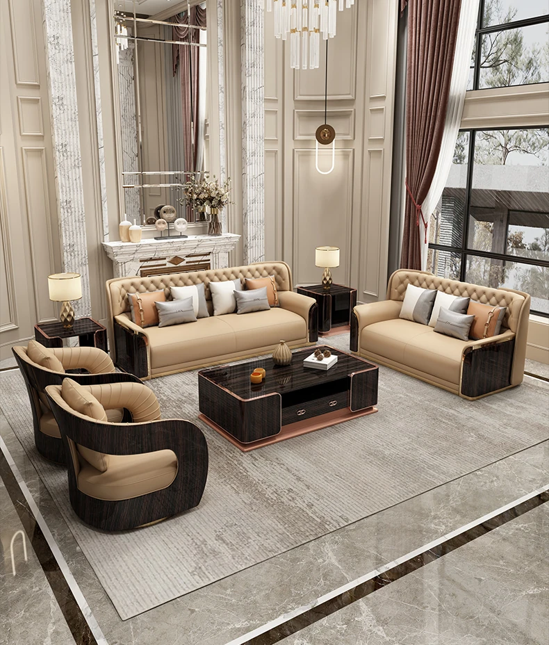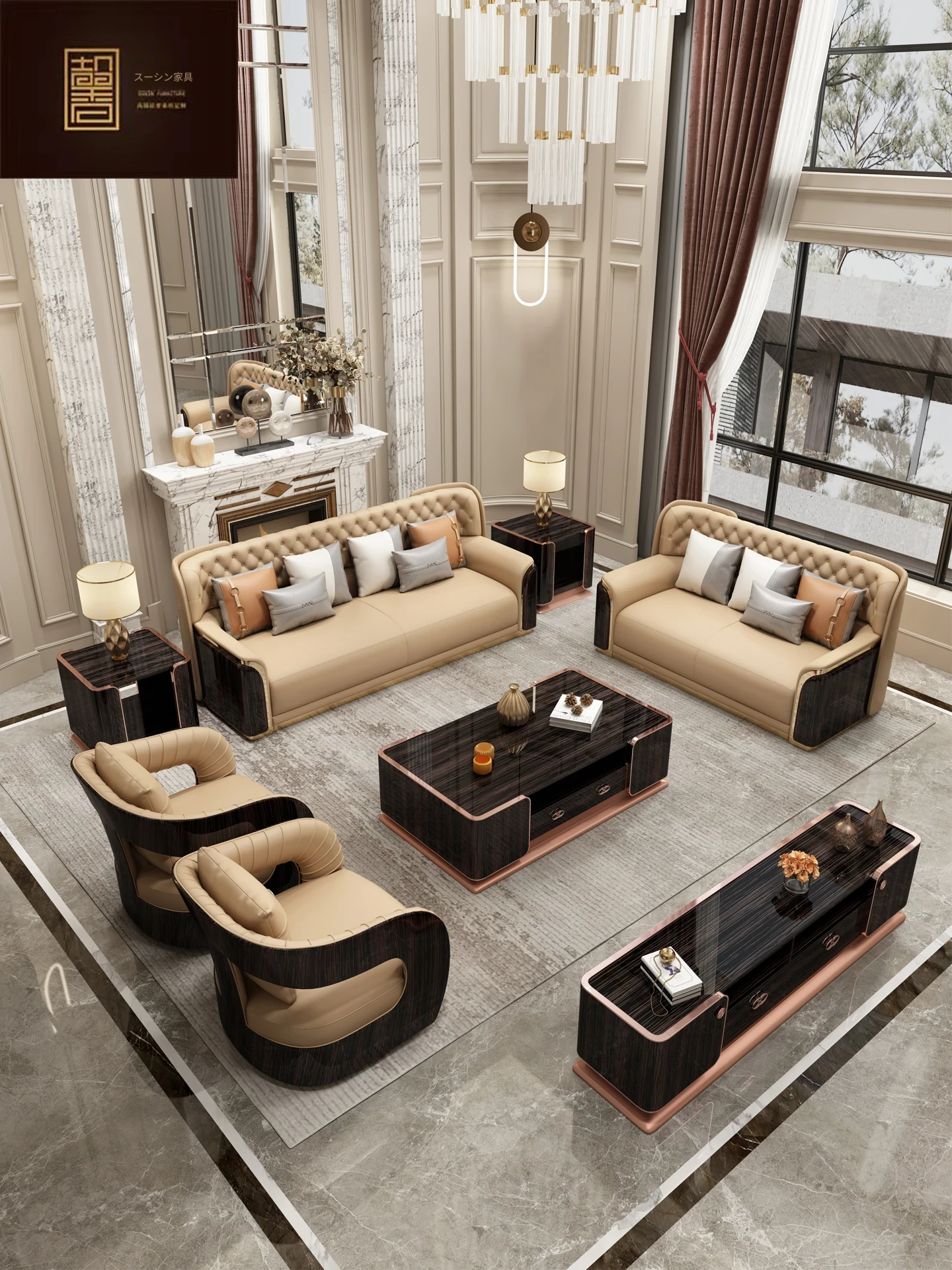 2つのリラックソファ+2人掛け+3人掛け+コーヒーテーブル+2.2メートルテレビボード+2つのサイドテーブル(イタリア輸入の本革)
