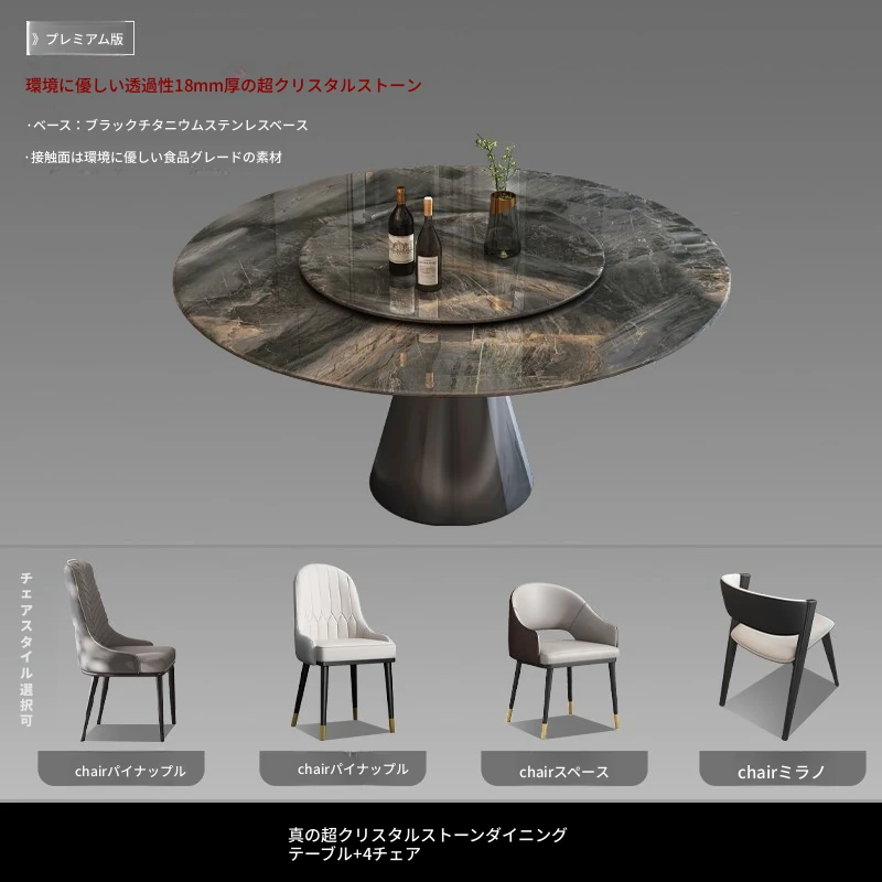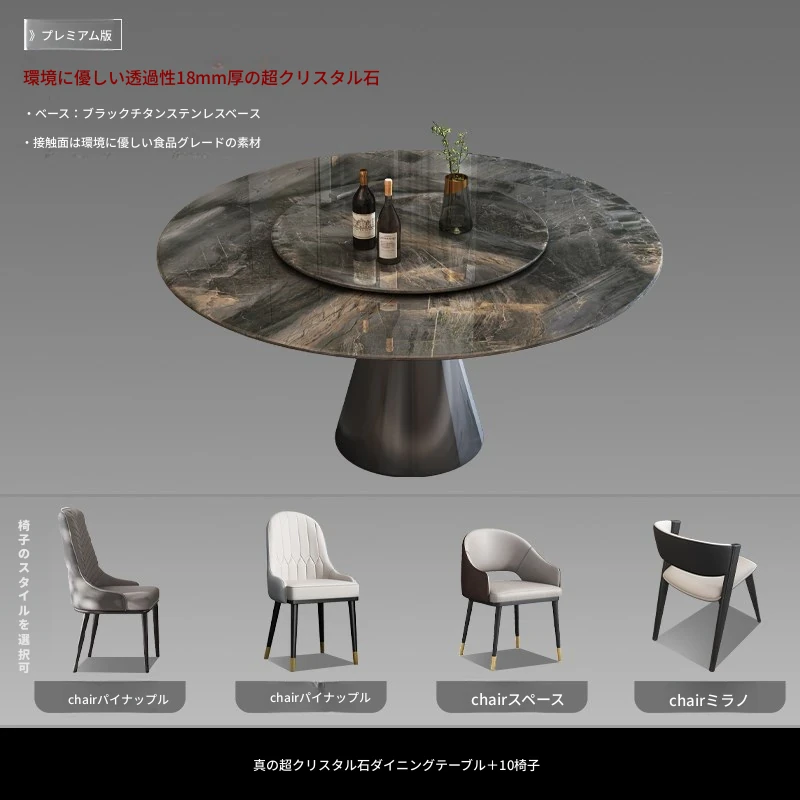 天然スーパークォーツストーンダイニングテーブル+10椅子